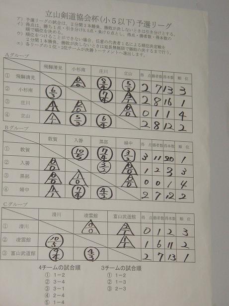 予選Cリーグ(1位2位が決勝トーナメントへ)・・・・井波1位