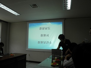 昌原市保健所を訪問 案内は、歯科衛生士で保健部長の呉莫葉さん (第33回むし歯予防全国大会in富山翌日の研修会 講師) |
