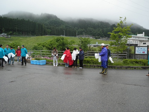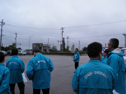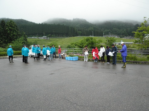 小雨の降りそうな模様の中、午前6時半に集合。 |