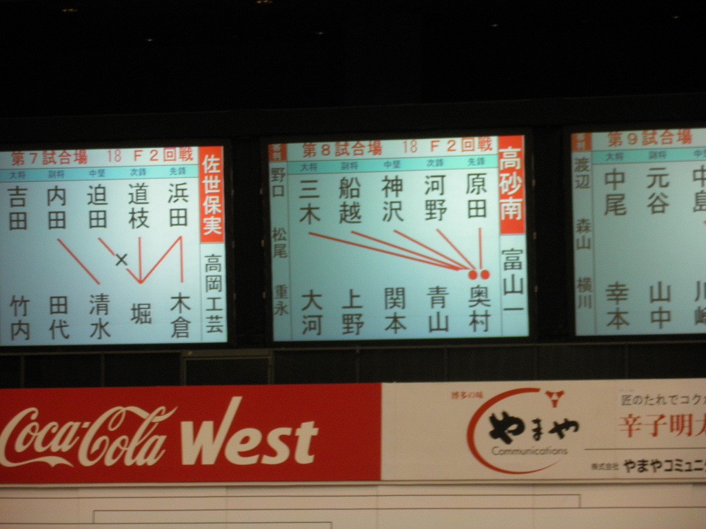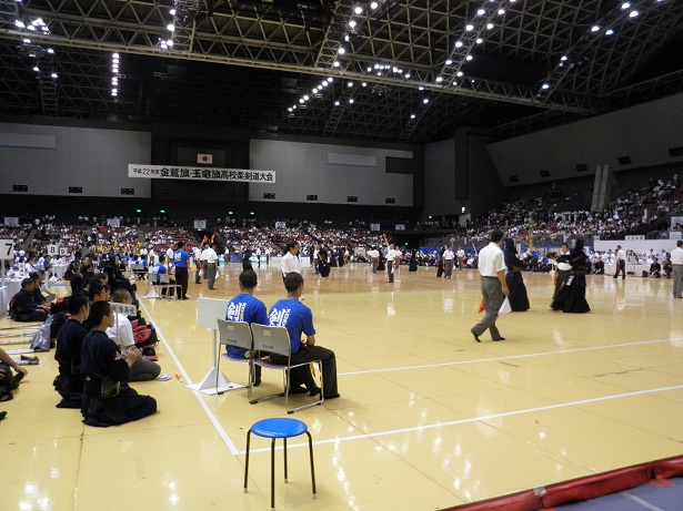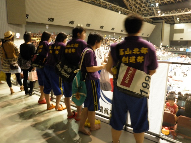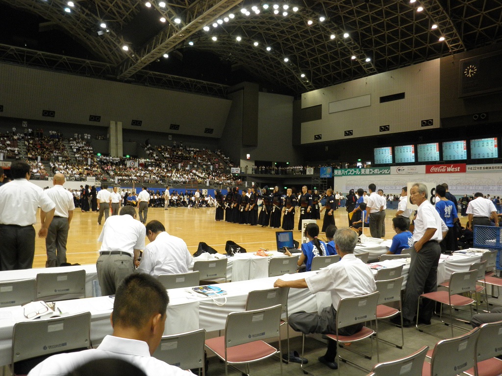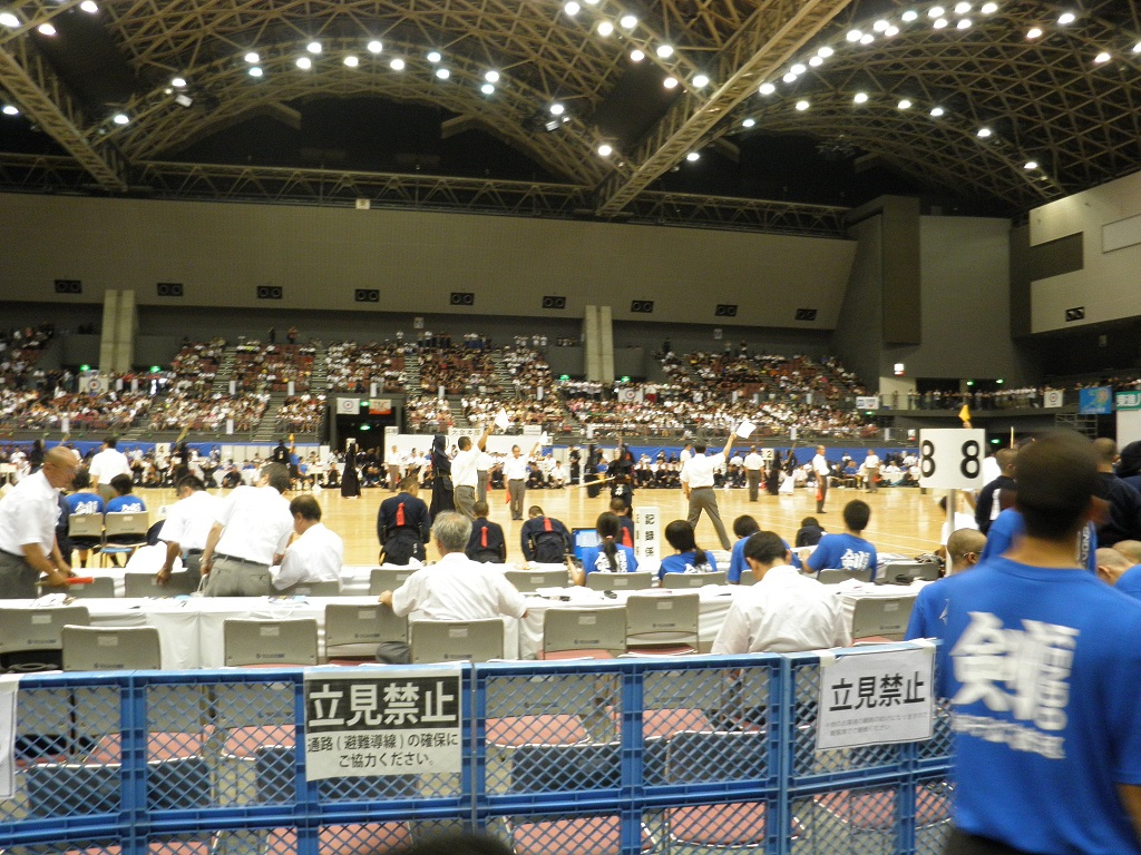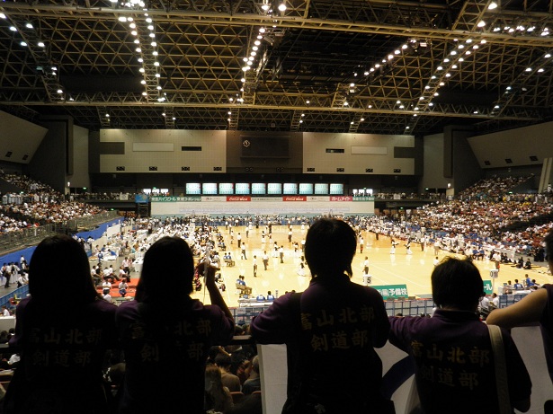 | 話題の玉竜旗剣道大会を初めて見学しました。「武士道シックスティーン」などにも出てくる高校生の夏の最大の剣道大会で、勝ち抜き戦での勝敗を決するまさに、ガチンコの勝負を見せてもらえる大会です。 25日から、釜山に研修に行くついでに、立ち寄りました。マリンメッセのすぐ隣が、博多港国際ターミナルで、ビートルという高速艇で、3時間弱で、釜山港に着きます。 たまたま、娘たちの富山北部高校が参加するということで、応援も兼ねて行きました。 会場に入って、まず驚いたのが、公衆衛生学会を思わせる厚さ2cmもありそうな大会プログラムと、会場のアナウンスが、「○会場での○回戦で、○×高校の○○選手が、5人抜きを達成しました。おめでとうございます。○○選手は、大会本部まで敢闘賞をとりに来てください。」というもので、次から次への放送が、いくつもありました。あっ、これが、「剣道日本」や「剣道時代」に掲載されるのだなと思いました。 釜山行きが、2時半で、娘たちの初戦が4時半ということで、その試合は観戦できませんでしたが、次の相手になる長崎清峰高校の試合ぶりを見ました。先鋒の森選手があわや5人抜きかという相手の大将戦まで行って敗れました。この相手といきなりあたるとは大変だなと感じました。(後から結果を聞いたら、先鋒の娘は引き分けていましたが、チームは惜敗していました。) また、同じ富山県勢の高岡工芸が試合をしていました。先鋒の川合選手が2人抜きをして、相手の中堅としているところで、港に向かうので席を立ちました。(こちらも結果を聞いてら聞いたら、惜敗ということでした。) 帰りは、27日、男子の初日でした。ちょうど富山県勢が5校(龍谷富山、高岡工芸、高朋、富山第一、富山工業)と参加していて、午後3時半過ぎから30−40分だけ見学してきました。高朋は、初戦突破していて、少しして、高岡工芸と、富山第一が相前後して始まりました。工芸の木倉君が先鋒で1本とって幸先いいかなと思っていたら2本とられ逆転負け。その後、次鋒の頑張りから逆転し、逃げ切りました。 そして、ついに世紀の5人抜きを目の前で目撃しました。富山第一の奥村康也君が、あれよあれよの5人抜き達成です。会場には自由に入れたので、あまりに興奮し、試合場から出てきた瞬間をデジカメに収めました。(昔、小学生のころ、三劔杯に一緒に行ったころとは違い、背丈も伸びて、たくましくなっていました) ![]() 5人抜き達成直後の奥村君・・・フラッシュたけないので、少しピンボケ・・・面を外してとればよかったのに・・・ |