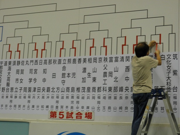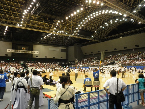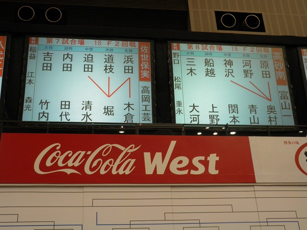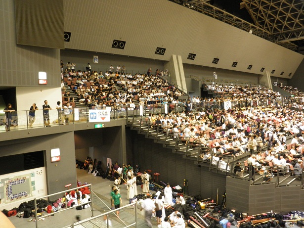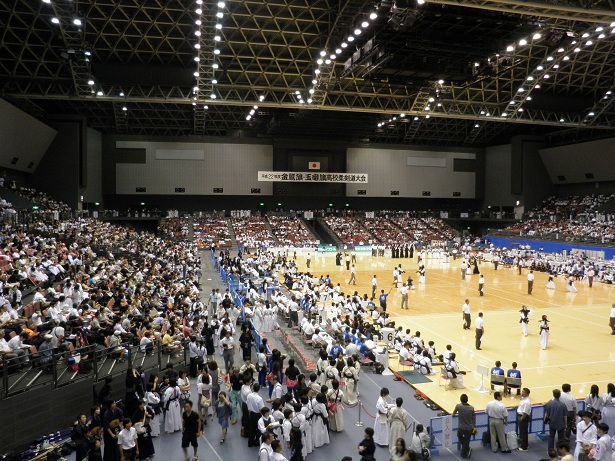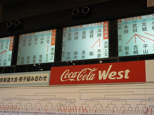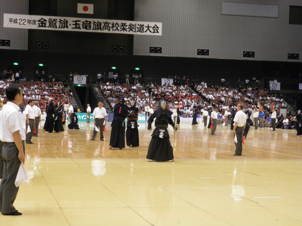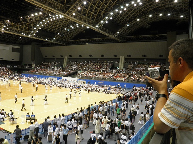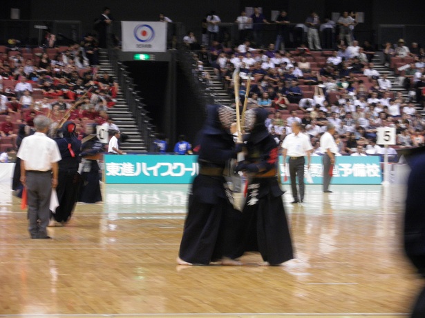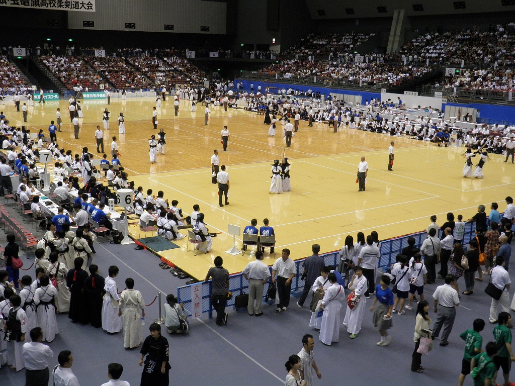 | 話題の玉竜旗剣道大会を初めて見学しました。「武士道シックスティーン」などにも出てくる高校生の夏の最大の剣道大会で、勝ち抜き戦での勝敗を決するまさに、ガチンコの勝負を見せてもらえる大会です。 25日から、釜山に研修に行くついでに、立ち寄りました。マリンメッセのすぐ隣が、博多港国際ターミナルで、ビートルという高速艇で、3時間弱で、釜山港に着きます。 たまたま、娘たちの富山北部高校が参加するということで、応援も兼ねて行きました。 会場に入って、まず驚いたのが、公衆衛生学会を思わせる厚さ2cmもありそうな大会プログラムと、会場のアナウンスが、「○会場での○回戦で、○×高校の○○選手が、5人抜きを達成しました。おめでとうございます。○○選手は、大会本部まで敢闘賞をとりに来てください。」というもので、次から次への放送が、いくつもありました。あっ、これが、「剣道日本」や「剣道時代」に掲載されるのだなと思いました。 釜山行きが、2時半で、娘たちの初戦が4時半ということで、その試合は観戦できませんでしたが、次の相手になる長崎清峰高校の試合ぶりを見ました。先鋒の森選手があわや5人抜きかという相手の大将戦まで行って敗れました。この相手といきなりあたるとは大変だなと感じました。(後から結果を聞いたら、先鋒の娘は引き分けていましたが、チームは惜敗していました。) また、同じ富山県勢の高岡工芸が試合をしていました。先鋒の川合選手が2人抜きをして、相手の中堅としているところで、港に向かうので席を立ちました。(こちらも結果を聞いてら聞いたら、惜敗ということでした。) 帰りは、27日、男子の初日でした。ちょうど富山県勢が5校(龍谷富山、高岡工芸、高朋、富山第一、富山工業)と参加していて、午後3時半過ぎから30−40分だけ見学してきました。高朋は、初戦突破していて、少しして、高岡工芸と、富山第一が相前後して始まりました。工芸の木倉君が先鋒で1本とって幸先いいかなと思っていたら2本とられ逆転負け。その後、次鋒の頑張りから逆転し、逃げ切りました。 そして、ついに世紀の5人抜きを目の前で目撃しました。富山第一の奥村康也君が、あれよあれよの5人抜き達成です。会場には自由に入れたので、あまりに興奮し、試合場から出てきた瞬間をデジカメに収めました。(昔、小学生のころ、三劔杯に一緒に行ったころとは違い、背丈も伸びて、たくましくなっていました) ![]() 5人抜き達成直後の奥村君・・・フラッシュたけないので、少しピンボケ・・・面を外してとればよかったのに・・・ |