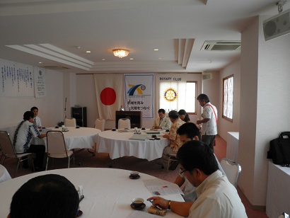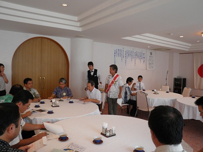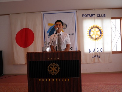 第1731回例会 8月4日(水) ・開会点鐘 ・ロータリーソング「日も風も星も」 ・「四つのテスト」唱和 ・参加者全員友情の握手 ・ビジター紹介@下形君(上田西RC)A山本武夫 君(井波庄川RC) ・会長挨拶 具志堅会長 ・幹事報告 崎浜幹事 ・委員会報告 ・友情交換 上田西RC・井波庄川RC・名護RC バナー交換 ・ニコニコBOX ・卓話 @下形君 A山本君 B二名の米山奨学生 ・閉会点鐘 |