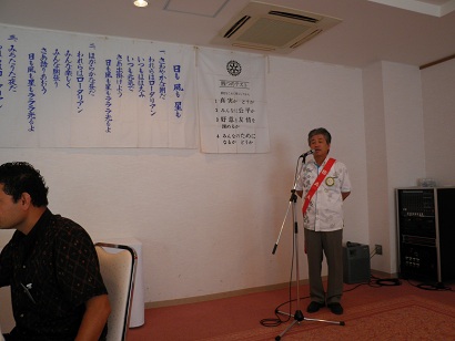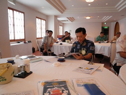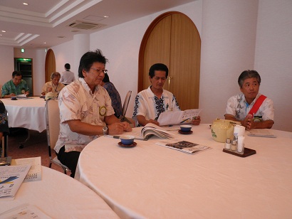 | 名護RCは、32名の会員ですが、出席免除の3名を除くと、9名のいつもなかなか出席できない方がおられ、20名以下で例会が行われているようです。ちょうど井波庄川ロータリークラブの例会場を彷彿とさせるこじんまりとしたアットホームな例会でした。 お土産に、会報もいただいてきましたが、ワープロで作成、プリントアウトという、現代的な会報でしたが、中身はきちっとした、立派な会報でした。 ガバナーマンスリーレポートも、頂きましたが、はじめは気がつきませんでしたが、沖縄県は、東京都と同一地区を形成しています。中身は東京の会員の動向がほとんどでした。 初めて、県外にメイクアップして、いろいろ為になりました。(山本武夫) |