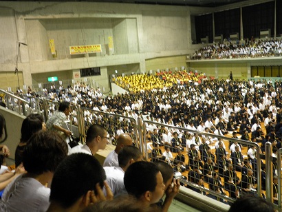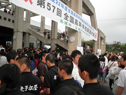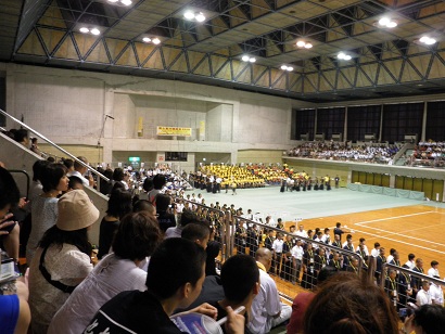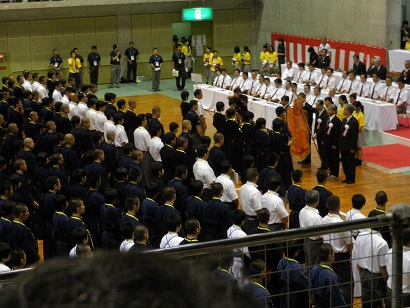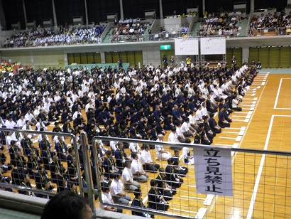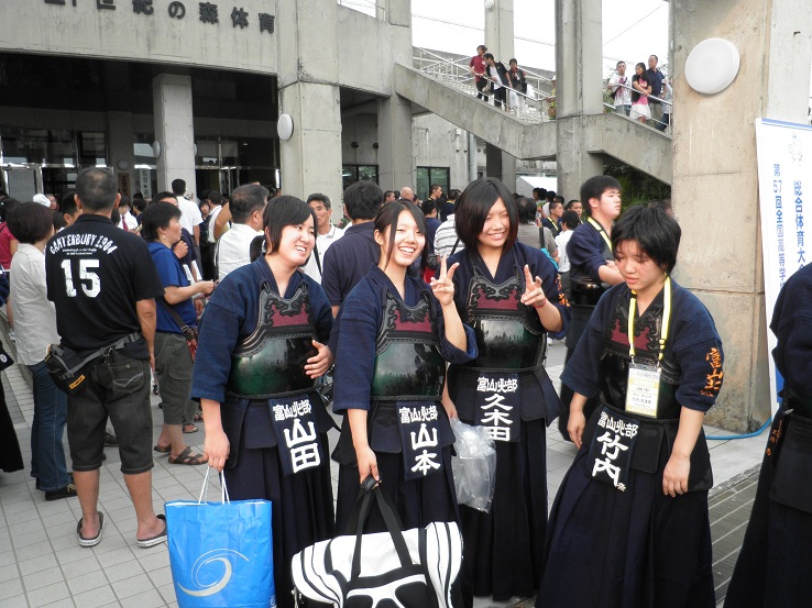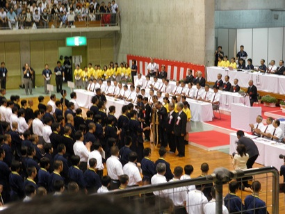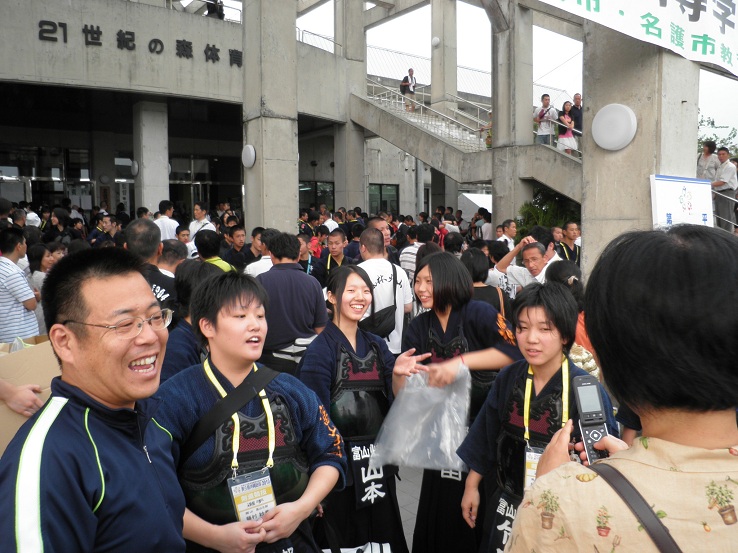 ![]() 開会式を終えて、ほっとした富山北部高校選手たち |