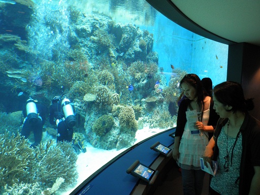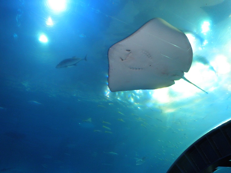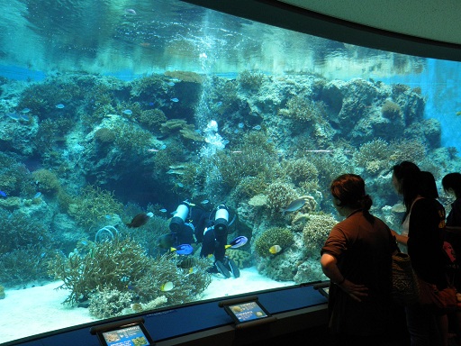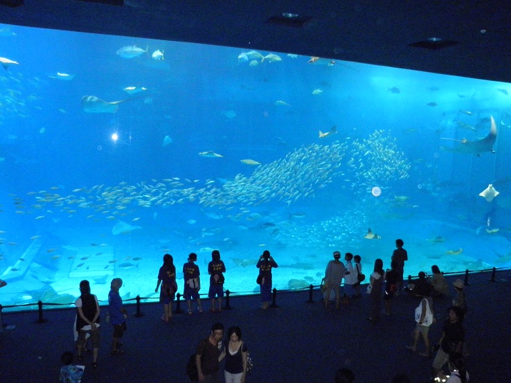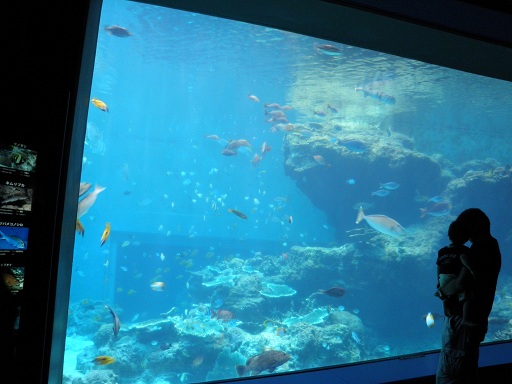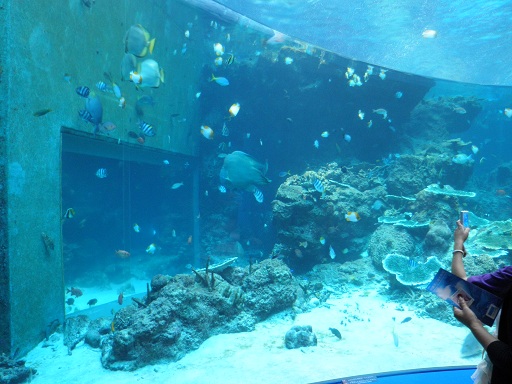 大パノラマ水槽前にて、・・・ドバイにできる前まで、世界1の水槽でした |