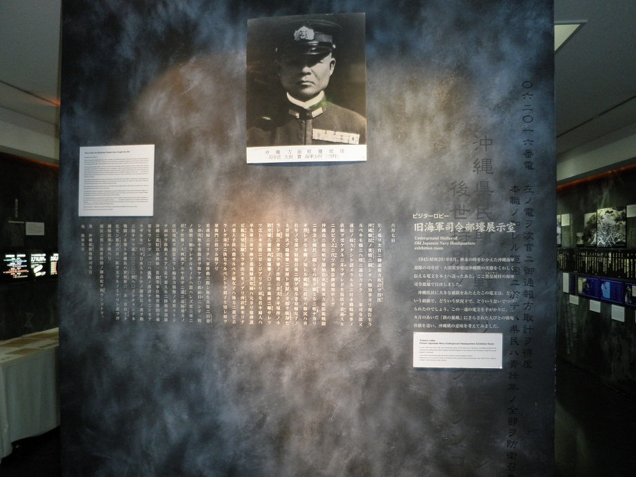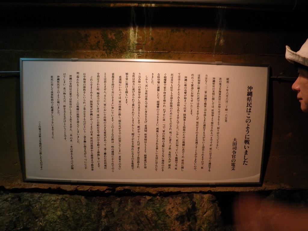 ![]() 海軍司令部壕にて、太田司令官の有名な電報・・・「沖縄県民のことを、後世に伝えてほしい・・・」 |