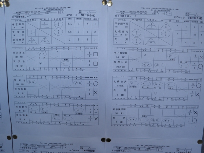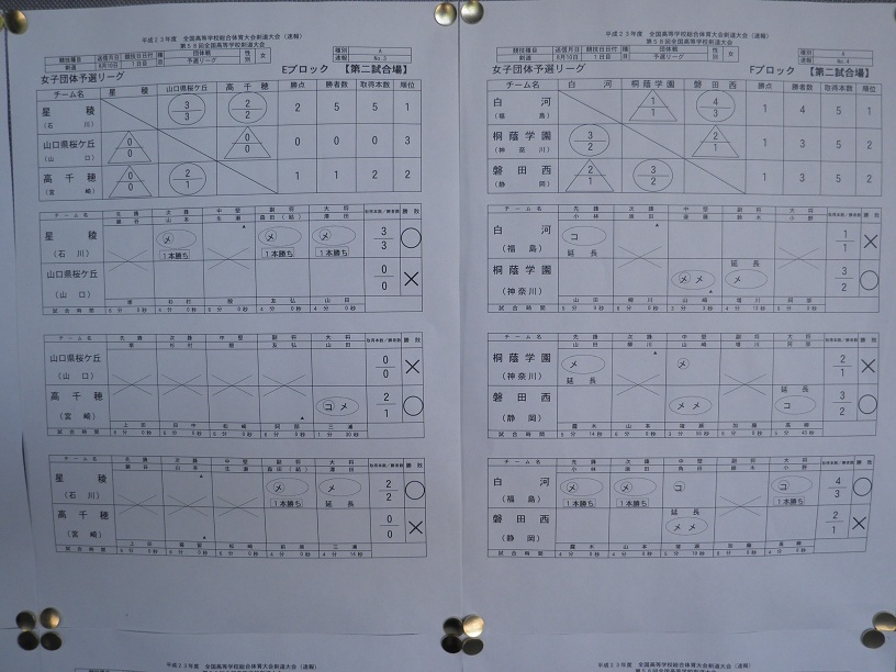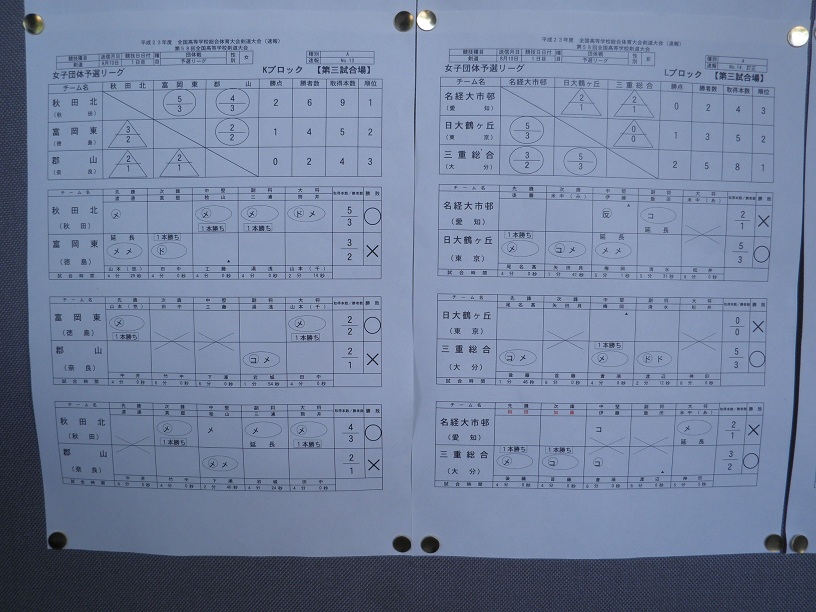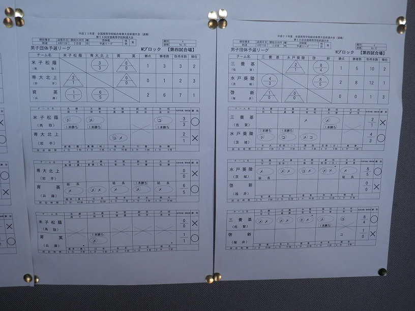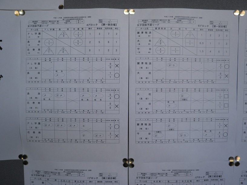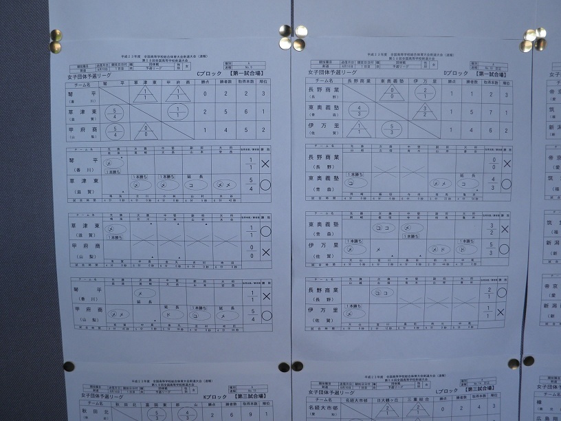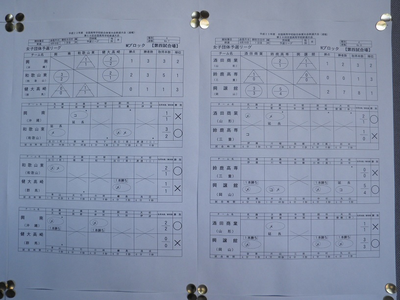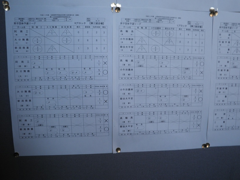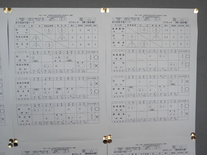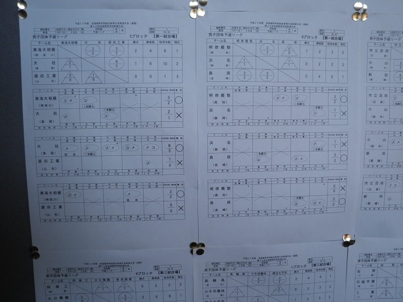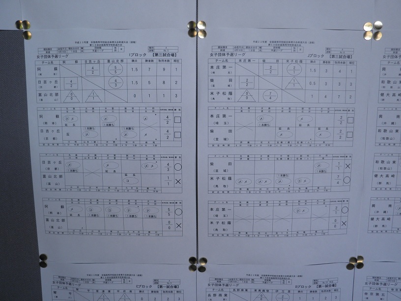 大会掲示版(最終日は見学できなかったので、途中まで)