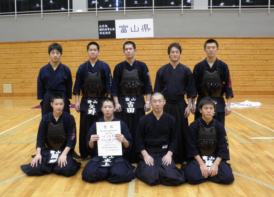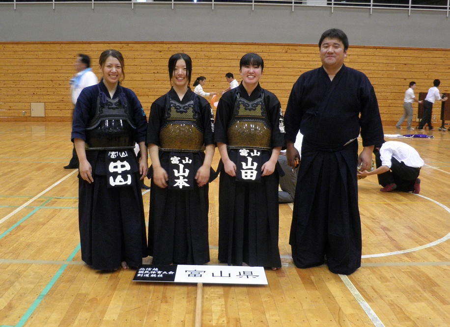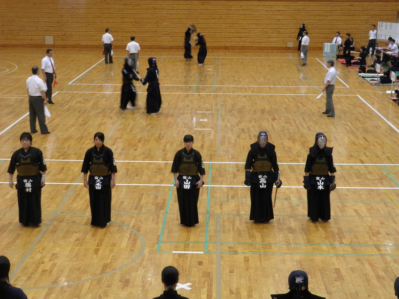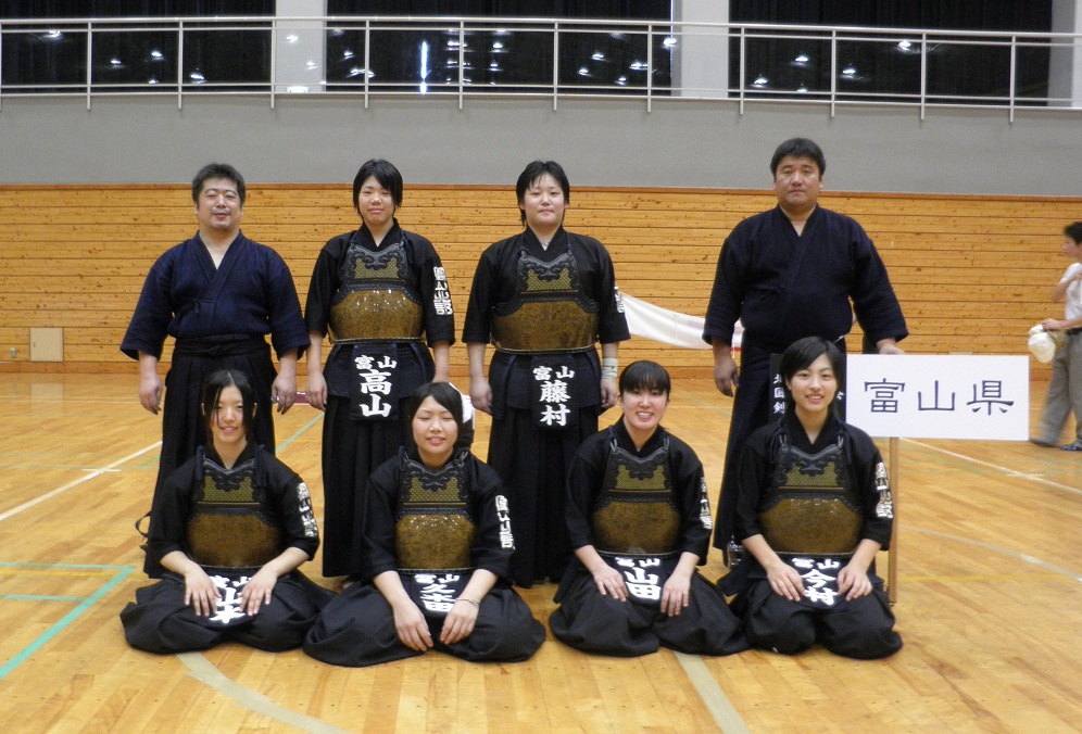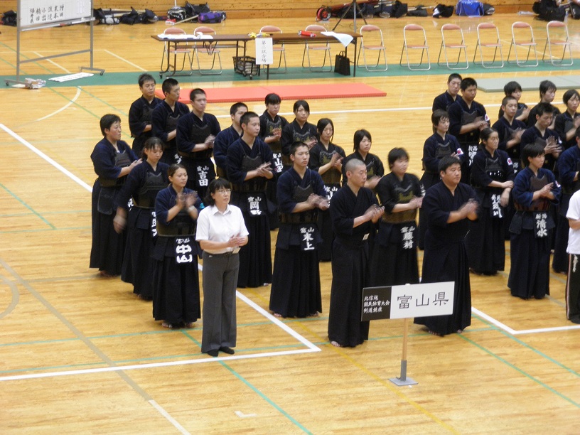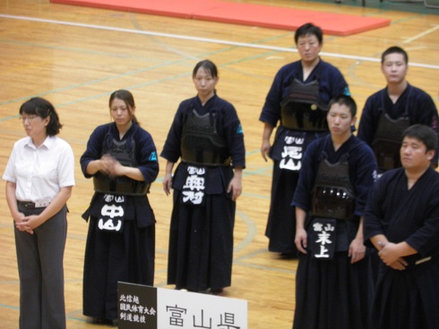 | 昨年の、富山開催の北信越国体は、猛暑の中、冷房の効かない庄川体育センターだったが、今年は、山紫水明、山川の大自然に恵まれた信州大町で涼しい環境の中で開催されました。 今年の大会で、県勢は昨年より大健闘、特に少年男子は、本大会出場まであと一歩に迫り、応援席も最高潮に盛り上がりました。 最初の景気づけは、成年女子が第1試合に接戦をものにし、幸先よい1勝をもたらしました。その後も、先鋒、中山愛選手が3勝と、素晴らしい牽引を果たしましたが、新潟・石川の強豪を崩せず、4位に終わりました。 少年男子は、初戦、地元長野を、4−1で下して勢いに乗り、石川・福井をそれぞれ4−1,5−0と退け、3勝同士の新潟と本大会出場をかけることになりました。このチームは高校3年生が、富山全中世代のため、強化されてきた中心メンバーということもあり、ほとんどが県内に残って、今回のドリームチームになりました。多くの声援を受け、最後の新潟戦は、ここまで無敗の先鋒矢野選手が破れ、続く、同じく無敗できた次鋒吉田選手は期待通り勝って、タイに戻しました。中堅岡野選手は、新潟の強豪吉田新選手を崩せず敗れ、副将のここまで無敗の木倉選手に期待をかけることになりました。一人2年生ながら頑張ってきた木倉選手は、面を先行されるも、小手を返し、応援席一同大拍手、逆転に望みをつないだが、仕切り直しの直後に相手石田選手に胴を決められて、富山県の敗退が決まりました。しかし、昨年の5位(0勝)から、ここまで頑張った選手に大いにねぎらいの拍手を送ります。来年も期待します。 少年女子は、開幕戦新潟ー石川戦が新潟が3−2で辛勝して、初戦となった富山県チームは、この必死の石川と対戦しました。先鋒山本選手は、長い延長戦で必死の攻防を繰り返し、手数で上回るものの決定打がなく、相手鮒田選手が、狙った小手に旗2本の微妙な判定ながら破れ、このまま石川勢を勢いに乗せる結果になりました。次鋒の高山選手、中堅の山田選手も敗れ勝敗は決しましたが、副将久木田選手は、高校北信越の覇者、森田選手に果敢に挑み、延長の末、小手を決めて、富山県の意地を見せました。続く大将の藤村選手は、インターハイ個人ベスト16の勢いそのままに、石川の大将澤田選手を圧倒、面で下しました。これが富山県勢の踏ん張りの始まりでした。続く地元長野戦は、応援の圧倒的な違いに戸惑いながらも、先鋒山本選手が、延長の末、山越選手を面で下し、中堅山田選手の勝利で、大将戦に望みをつなぎ、ここでも藤村選手が、長野の大将倉田選手を圧倒、延長に入り、面で下しました。続く、福井戦は、先鋒山本、副将久木田選手の踏ん張りで、またまた大将の藤村選手に期待がかかりました。ここでも福井の大将堀選手を面で破り、この時点で、福井を除く、4チームが2勝1敗に並びました。最後の長野ー石川戦の結果によっては、最終戦の新潟戦に勝てば本大会出場もあるだけに、こちらの女子の応援席も大いに盛り上がりました。しかし、石川が4−1で、長野をくだした時点で、石川の勝者数がトップになり、昨年に続く本大会出場が決まりました。 それでも、新潟戦に何とか勝ちたいと頑張りましたが、中堅山田選手が一矢を報いただけに終わり、結果的には、昨年と同じ4位でした。しかし、内容的には昨年と全然違う上位での活躍に、来年に期待するものが大きいと感じました。 高校生の暑い夏、選手諸君、インターハイに続く、遠征でお疲れさまでした。女子は富山北部単独チームの編成でしたが、2年生がそれぞれ2勝を挙げるなど成果もみられました。県内の有力選手の今後の活躍も併せて期待し、ドリームチームで本国体を目指すよう、頑張ってほしいものです。男子は、木倉選手や補員でサポートした篠原選手など、2年生諸君の来年に期待します。(山本武夫) |
