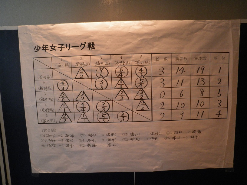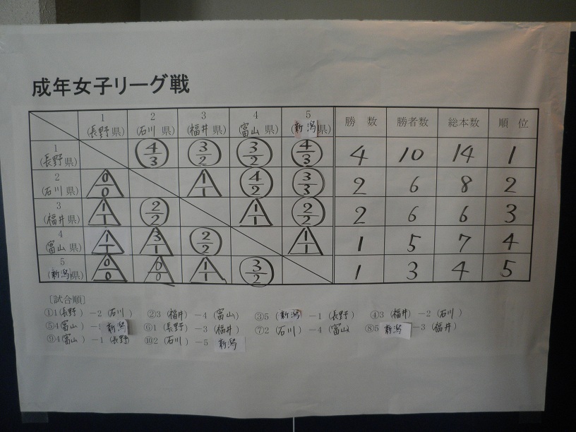 | 富山 | メ | メ | ○2/2 | 新潟 | コ | ドメ | ○3/2 | 富山 | ドメ | コ | △3/1 | 長野 | メメ | メ | ○3/2 | |||||||