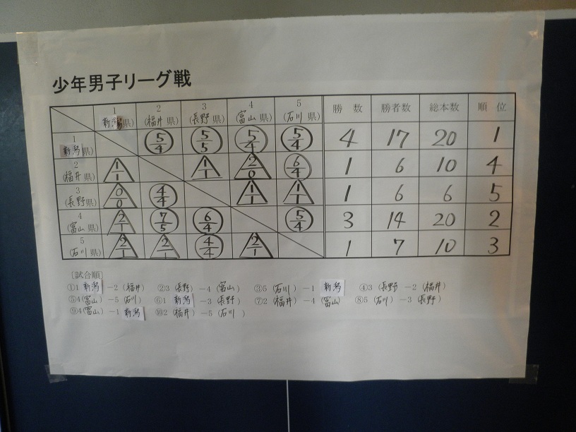 少年男子・・・富山は、3勝1敗で、惜しくも2位。あと1歩のところで本大会出場を逃す。