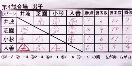 予選リーグ・・・井波予選1位で、決勝トーナメント進出