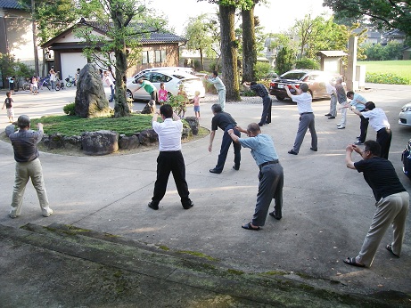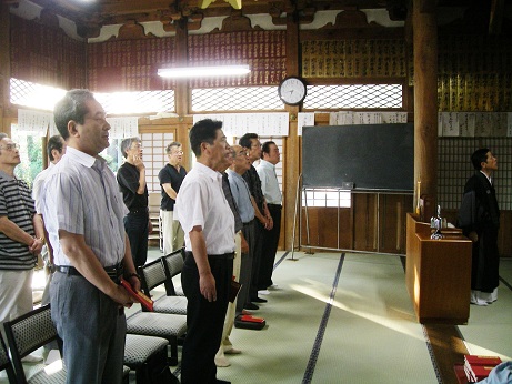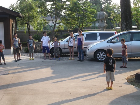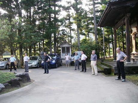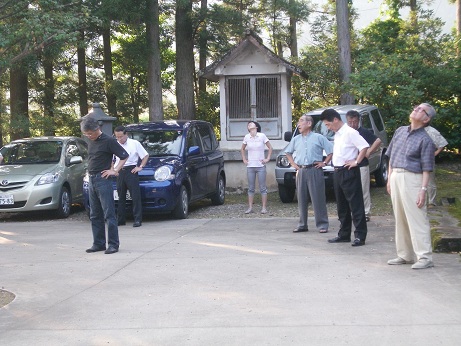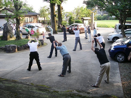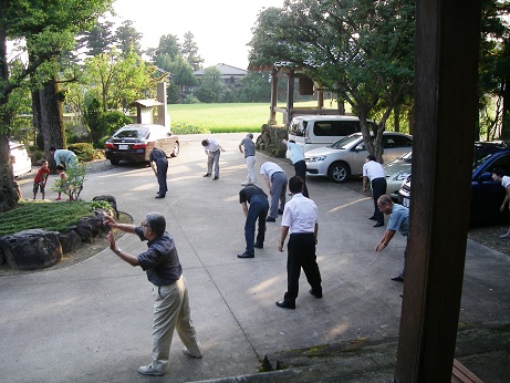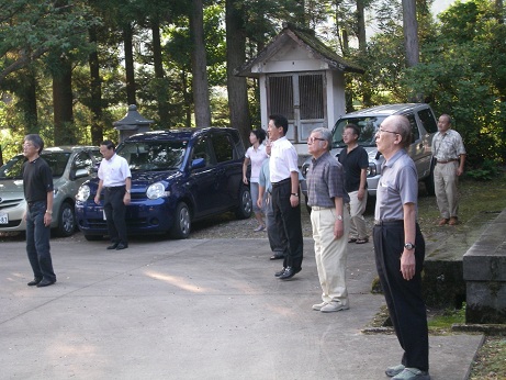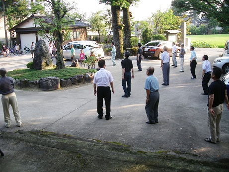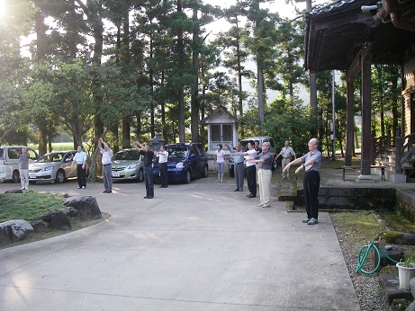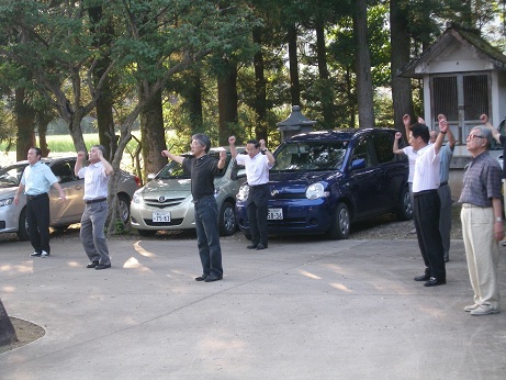 例会前のラジオ体操(地区の子供たちが、境内でしていましたのに合流)