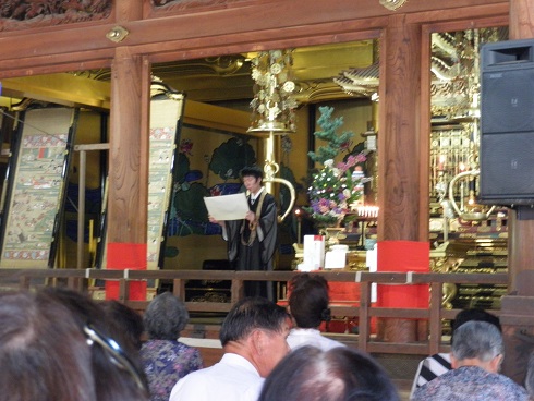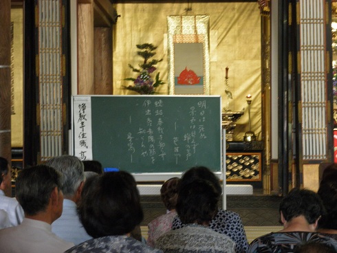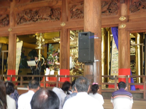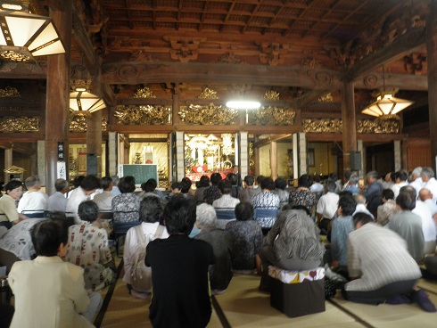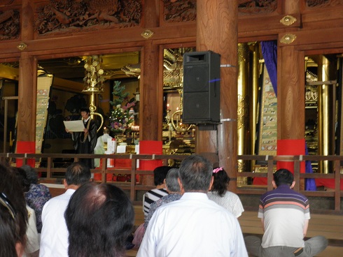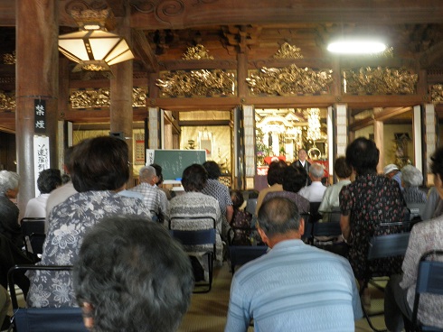 | 瑞泉寺本堂:お太子伝法話 浄教寺住職:高瀬顕正師(当クラブ11−12年度会長) 7月24日(日)〜26日(火)午前10時〜11時半 午後1時半〜3時 「わかりやすい法話」をこころかけておられる師の話は、 参拝の人から、大変好評でした。 |