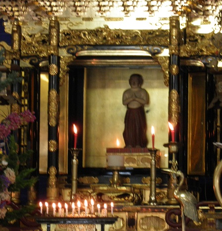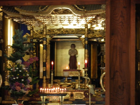 ![]() 聖徳太子摂政の時、御自ら彫られたご自身二歳の御尊像 「なむぶつ、なむぶつ」とお経を唱えられたというお姿 |