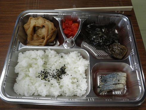 ←瑞泉寺、太子伝期間中の「御斎席(おとき)」:500円 昔から 、鯖のなれずし。なすびの煮物、麩、福新漬、ゴマかけご飯 |