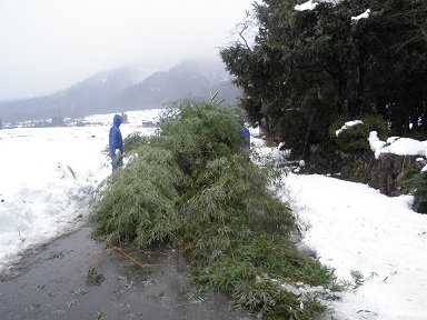 ![]() 小生が、午前中に切った竹を運んでもらいます。 |