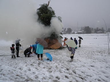平成23年の記録・・・・平成23年1月9日(日)午後1時から設置、午後3時点火