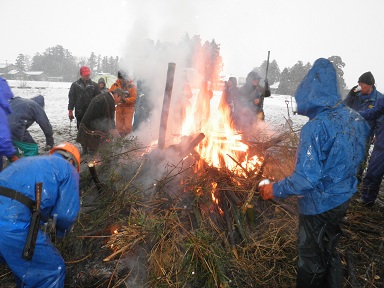 谷のどんど焼き(富山県南砺市谷の左義長)