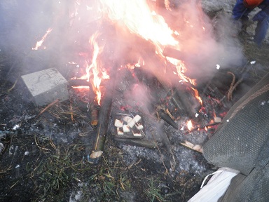 ![]() しばらくは、勢いよく燃え、真ん中に火が上がりました。 |