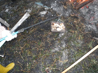 ![]() 四角い金属冠で、火の上において・・・(すごい工夫) あのー、灰ころがしにならんがでは・・・ |