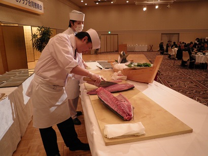 ![]() 会場の様子・・・手前、山本会員のテーブル |