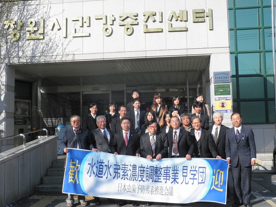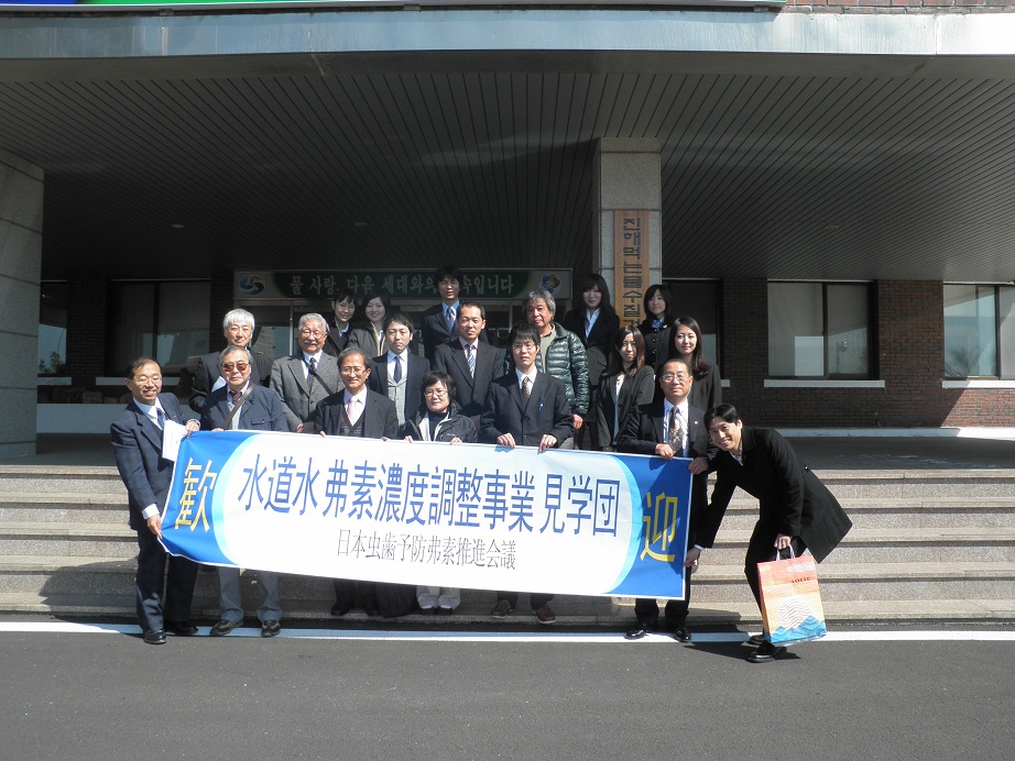 | 第3回韓国水道水フロリデーション施設視察研修参加者名簿 (団長) 山内皓央日F副会長(山梨) 引率: 山本武夫日F常務理事(富山) 幹事: 晴佐久悟日F常務理事(福岡歯科大学) 団員: 一瀬明、芳村英明、森克栄(山梨県)森木大輔(宮崎県庁:日F理事) 助田幸雄(富山県南砺市議) 東哲司、入江浩一郎(岡山大学) 亀田麻衣、高橋萌(東北大学学生) 菊地友香、金田朋子、和田崎陽平(岡山大学学生) 伊佐治愛加、後藤優子(埼玉県立大学保健医療福祉学部健康開発学科口腔保健科学専攻学生) |