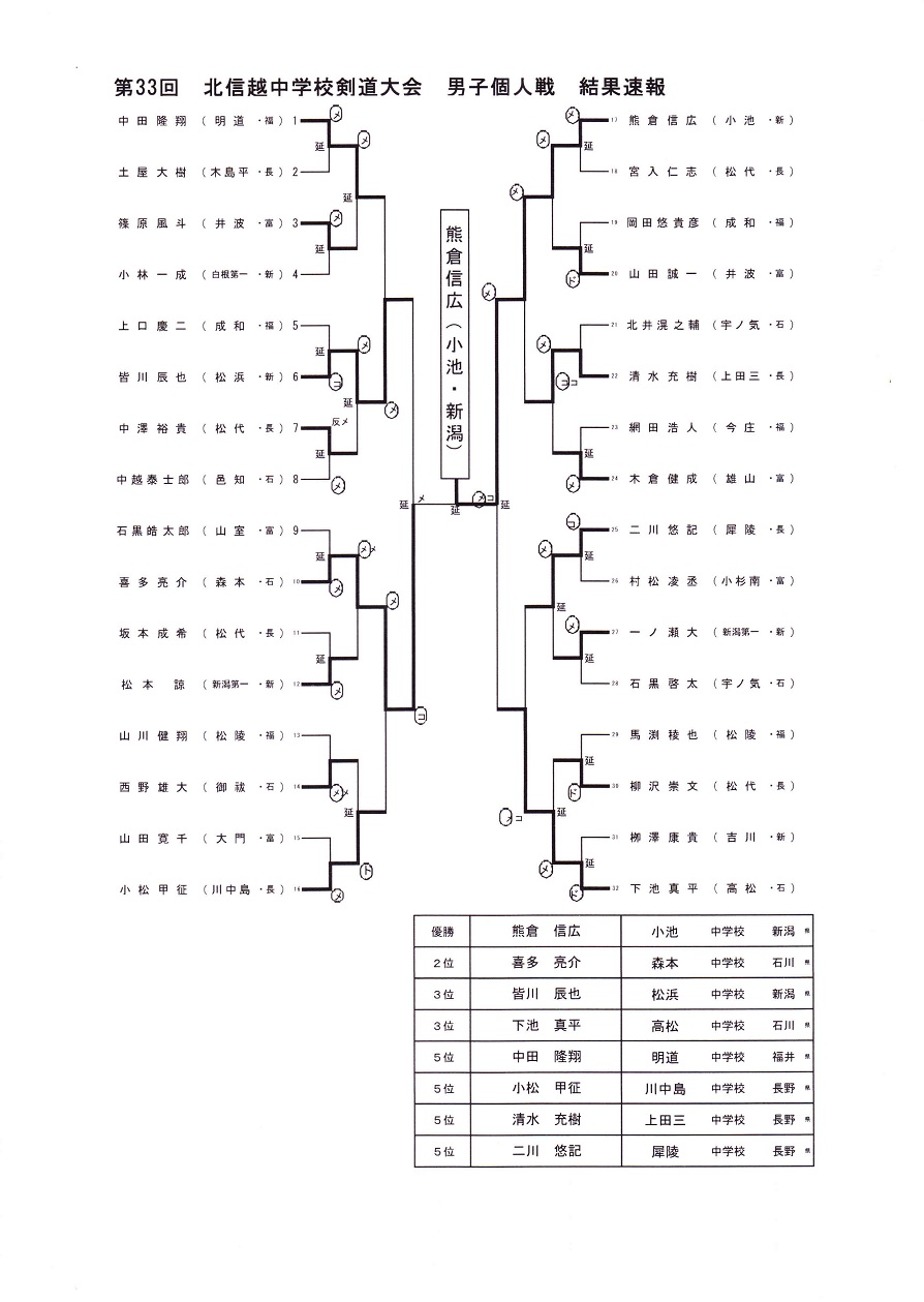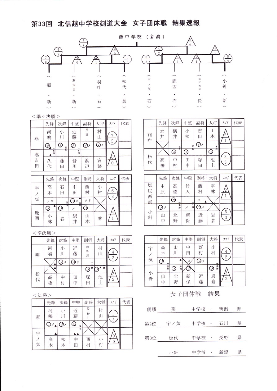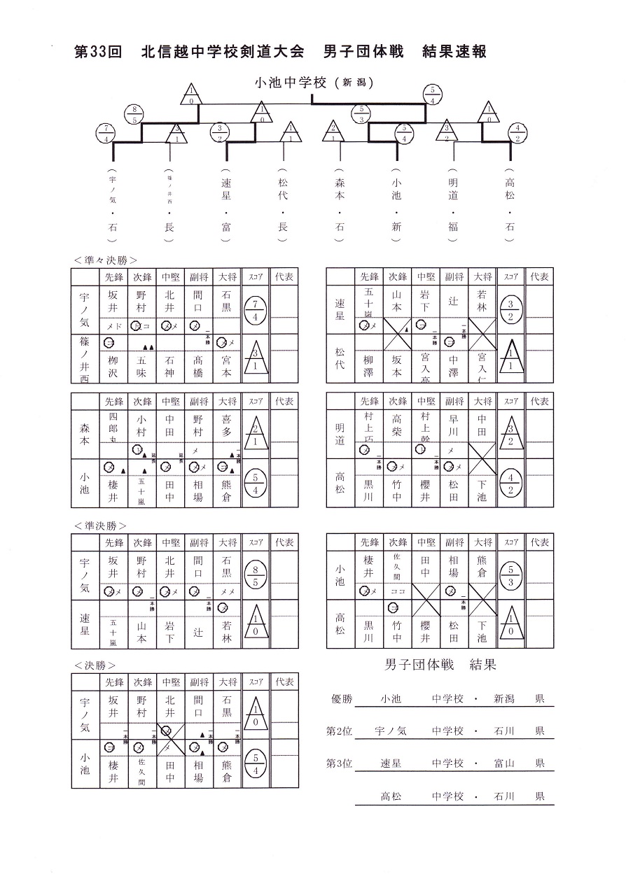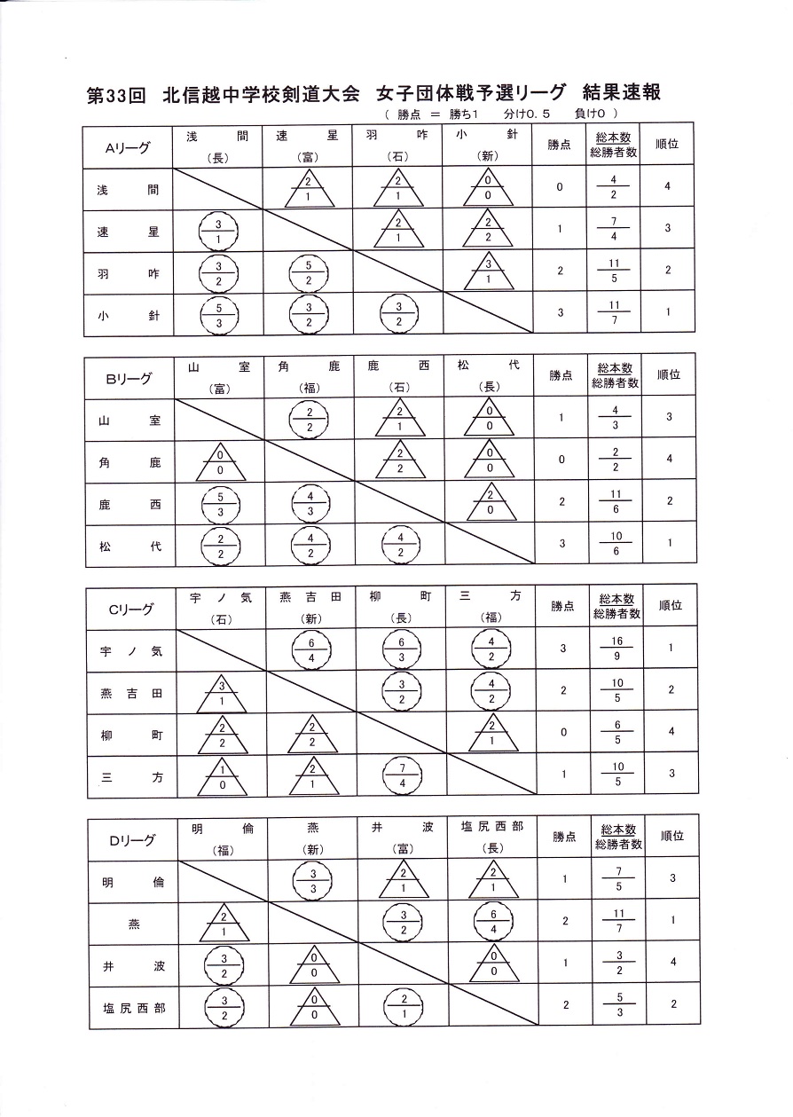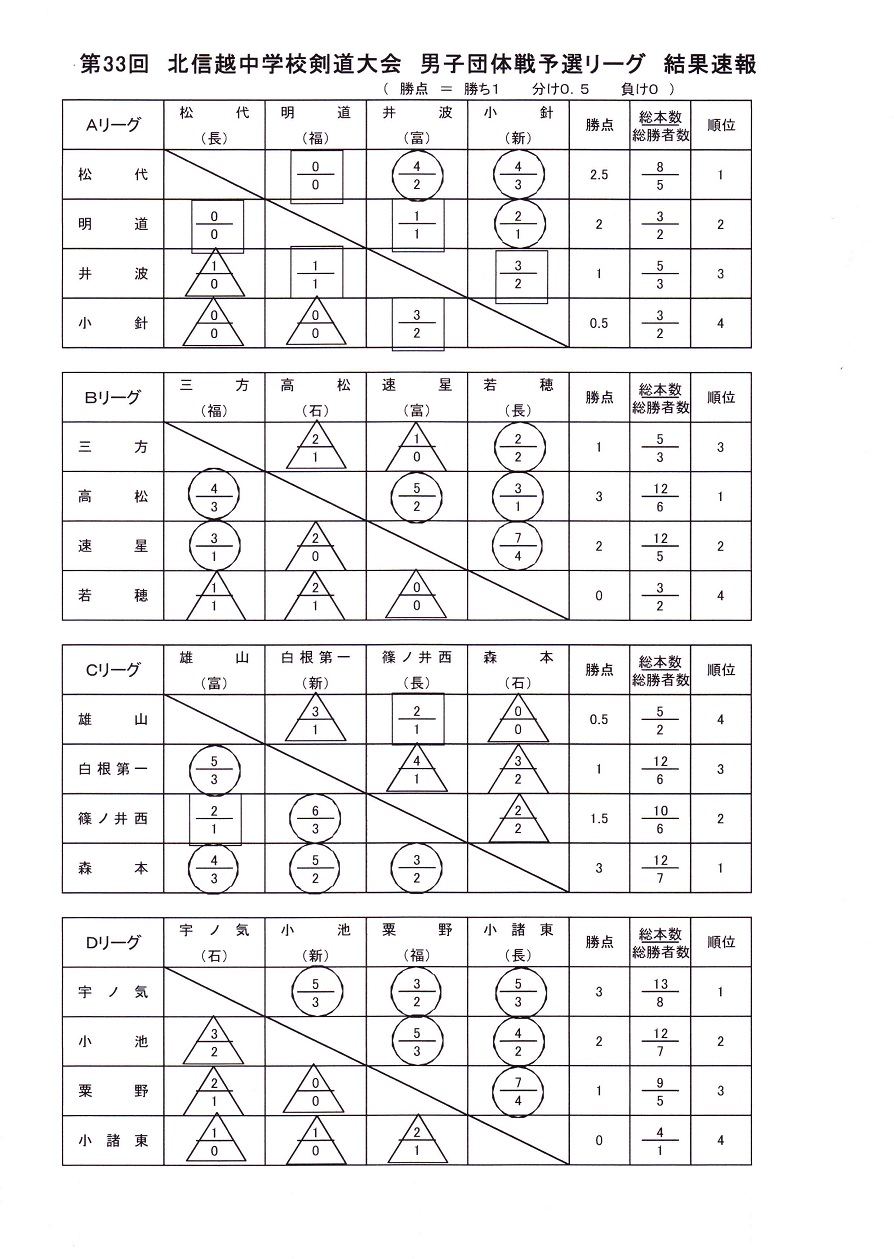 男子団体 井波中 予選リーグ 3位・・・決勝トーナメント進めず (参考)速星中 3位