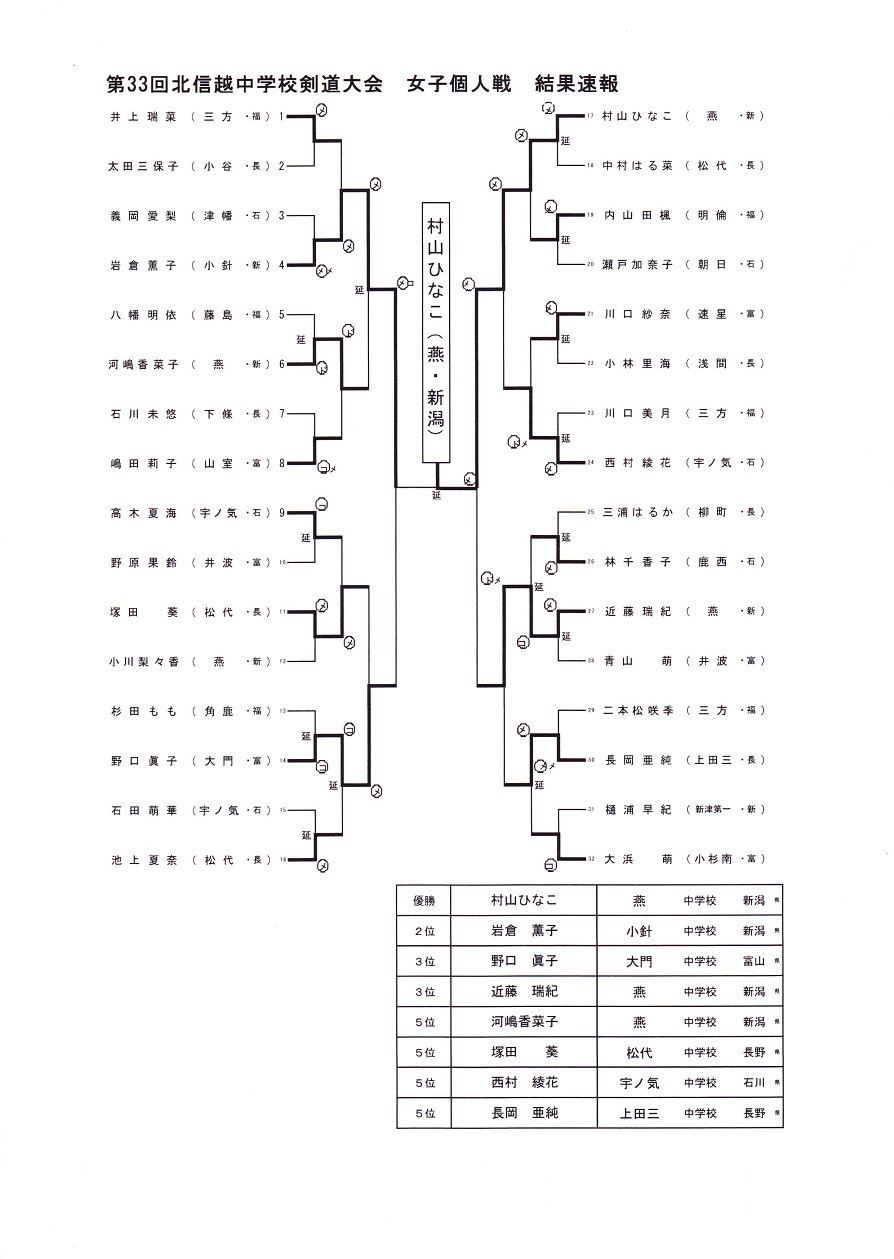 個人 野原果鈴・青山萌 1回戦敗退 (参考)野口眞子(大門中)3位