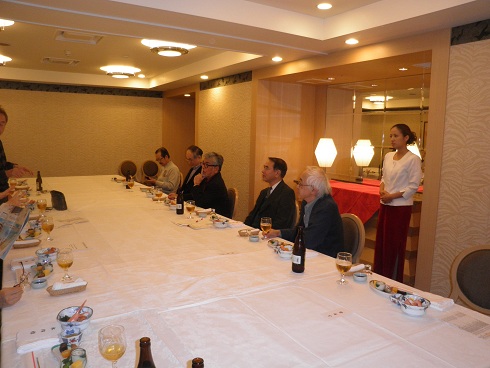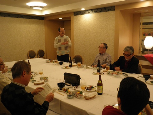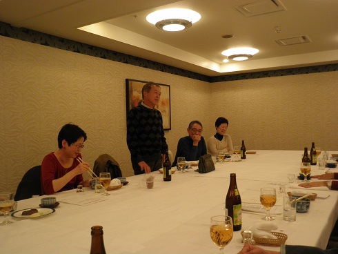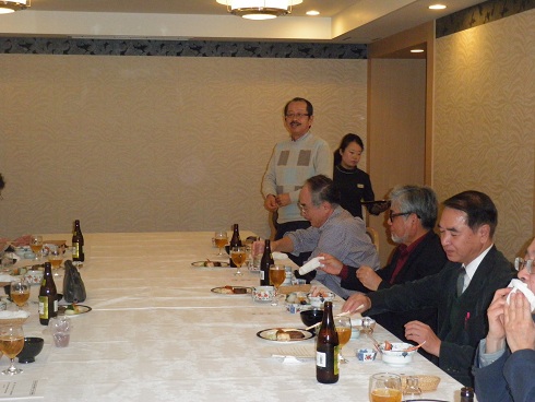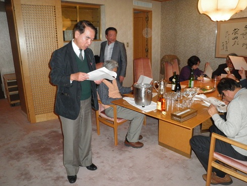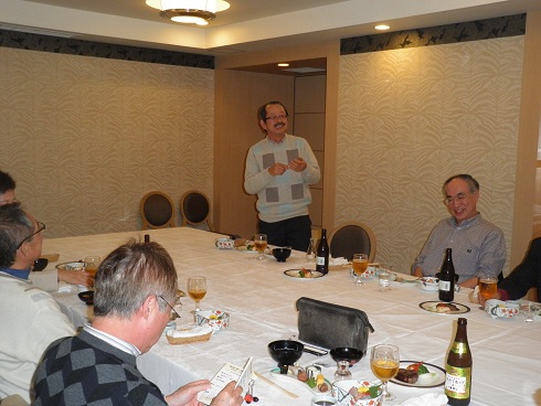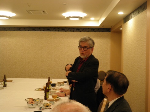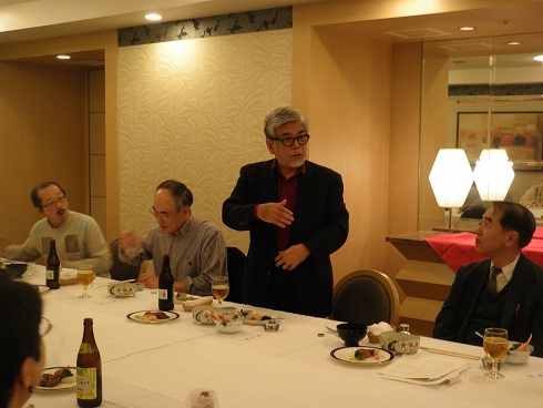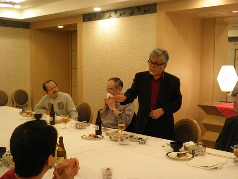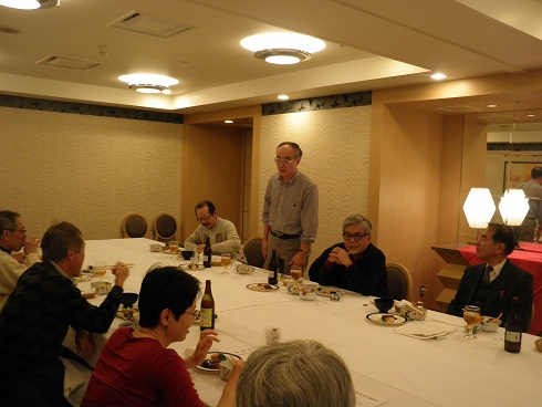 懇親会:司会:横林幹事、挨拶:坂本幹事、乾杯:茂木さん、各自スピーチ、次期開催地:平田君。閉会の挨拶:山本幹事。集合写真。