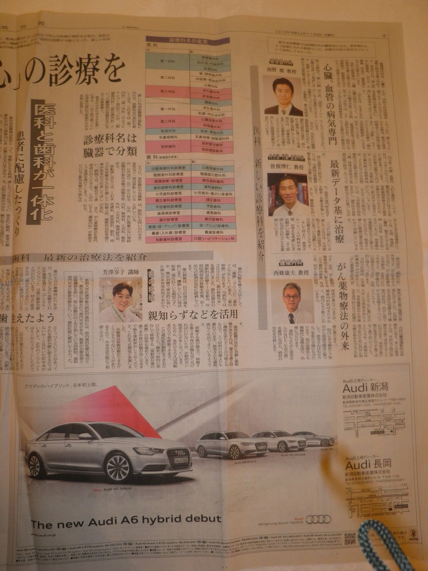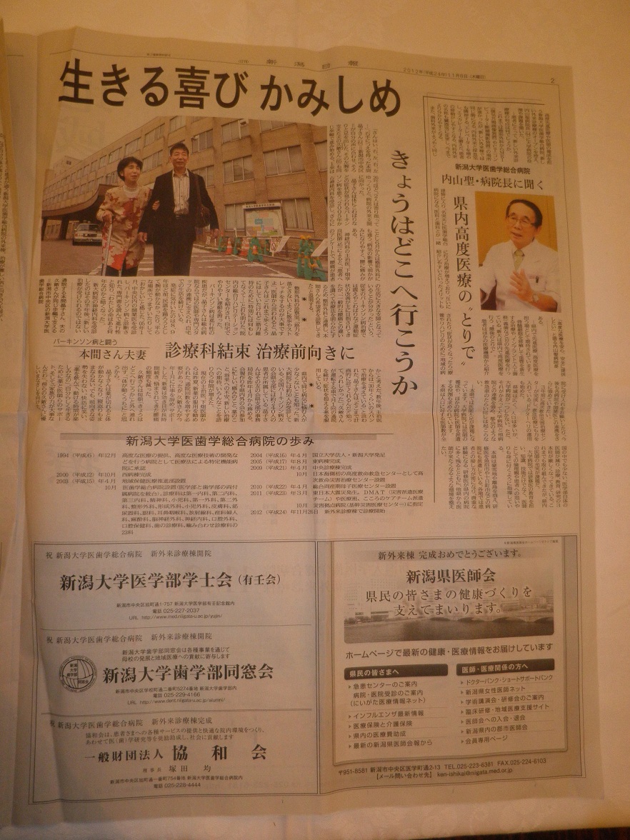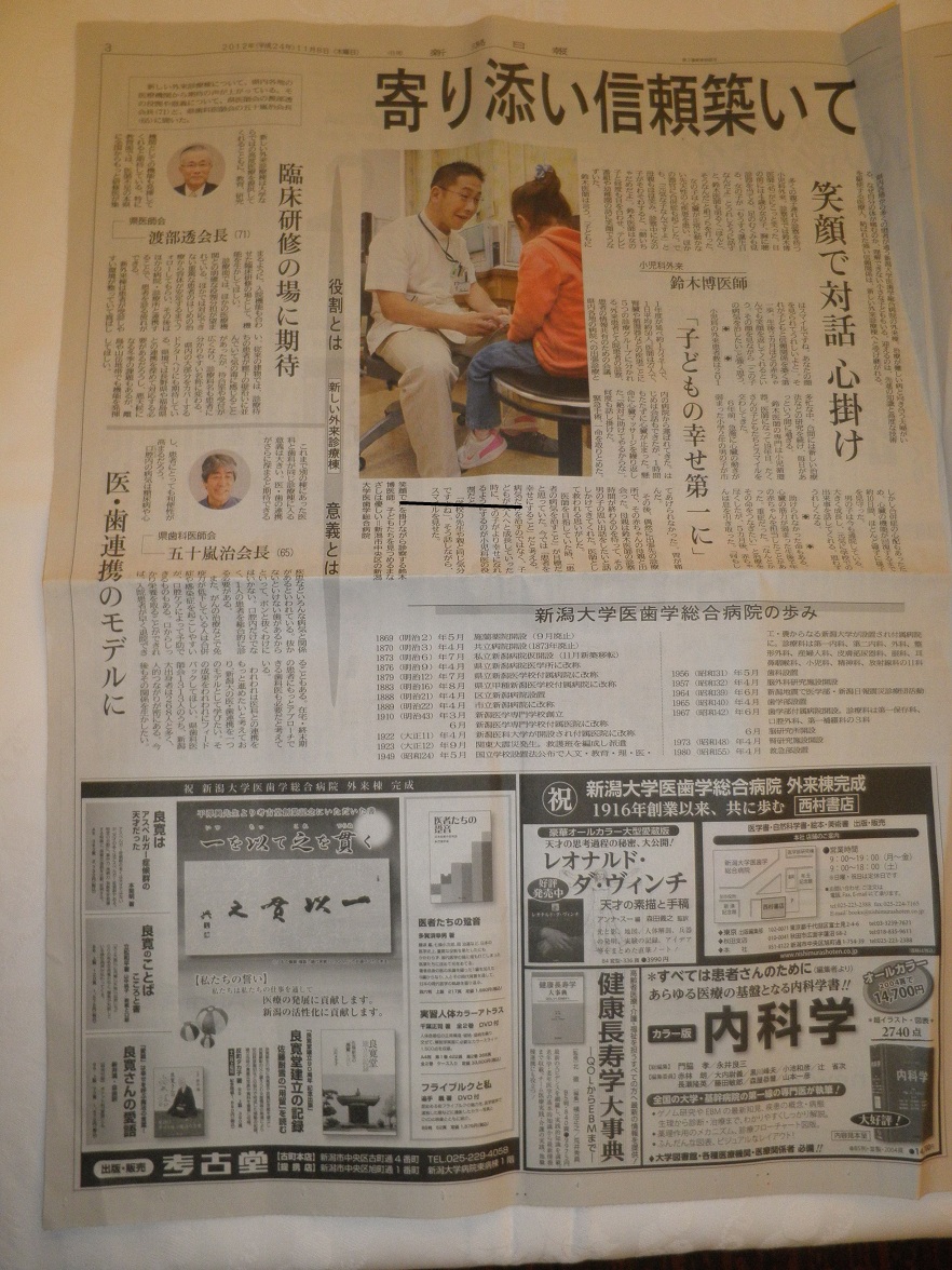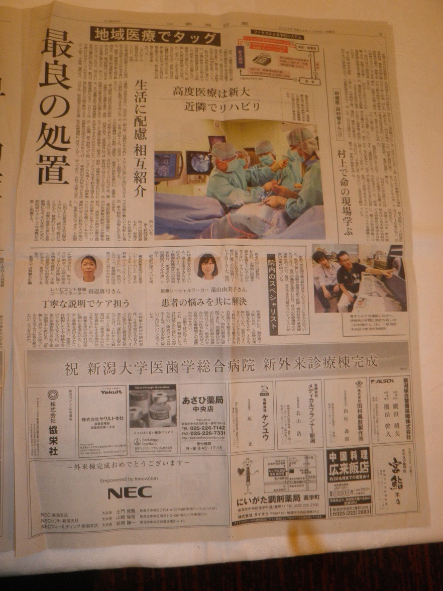 資料:茂木さんの新潟日報の新潟大学医歯総合病院の記事