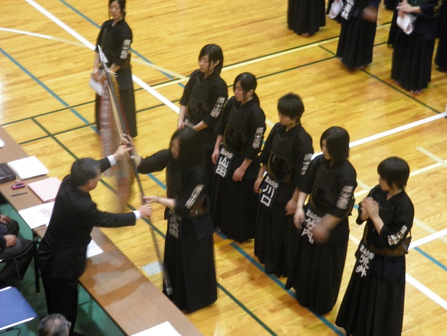 | 今年の北部高校は、春季大会で、団体優勝、個人ベスト4独占という成績で、県総体を迎えました。団体にはほとんど死角はないように見え、しかしながら勝負の世界はどこに落とし穴があるかわかりません。各校は、すべて北部をマークし、徹底して研究してきます。そんな中でも、選手は県外遠征で培った能力をふんだんに発揮し、ほぼ実力通りの成果を上げ、優勝を勝ち取りました。がむしゃらの1年生選手に、1−2のとりこぼしがあったものの、大勢に影響なく、6年連続9度目の優勝でした。滑川高校が5年連続という記録を持っていましたが、今年北部高校が塗り替えました。北信越、インターハイと頑張ってほしいものです。 個人戦は、秋季が今村選手、選抜予選と春季は山田選手が制覇し、本命として追われる立場になり、それぞれ各校のマークは厳しいものがありました。山田選手が思わぬ不覚を取ったのも、重圧があった所為と思われます。特に、個人戦は一発勝負であり、特に延長戦にもつれ込んだら何が起こるかわかりません。今回の個人戦は、準々決勝に進んだ3選手ともに、動きが重く感じられたのは、慎重に勝負をしていたからと思われます。久木田選手、山本選手ともに、延長戦の連続でした。決勝リーグにも、ドラマがありました。緒戦で、北部同士の試合となり、両者攻めきれず、引き分けました。この引き分けが、後に大きく左右しました。2試合目は、緒戦に勝った西村選手(高朋)に久木田選手が1本勝ち。負けた豊田選手(高岡)に、山本選手は、面を先行され、苦しい戦いに、終盤に何とか面を返したものの、緩んだすきに小手を取られ、苦しい状態になりました。3試合目は、山本選手が、早々と西村選手に面2本勝ちし、この時点で、西村選手を上回り、久木田選手と豊田選手の試合待ちになりました。久木田選手は、豊田選手に落ち着いて攻め、面1本を決めて、富山北部の2年連続個人戦1-2位独占という結果になりました。新潟インターハイでは、久木田選手、山本選手ともに、頑張って下さい。 |