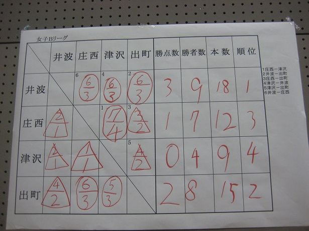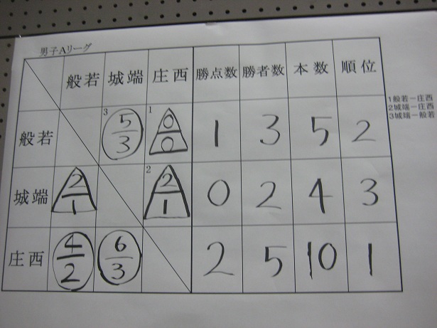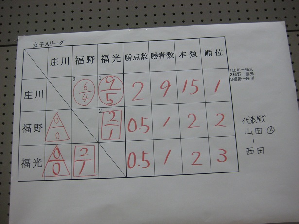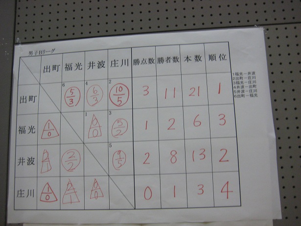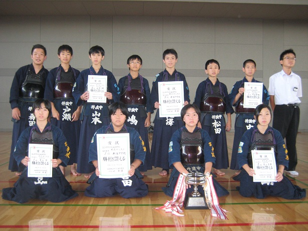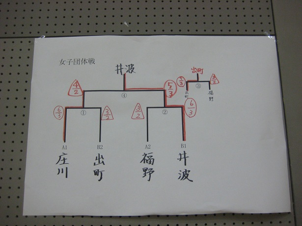 今年の新人戦は、高瀬大会の後の正念場でしたが、男女ともに、頑張りました。3年生の抜けた穴をいかに埋めるか、まずは、高瀬大会での結果を踏まえて、気持ちで負けないようにすることが大事。そういう面で、成果があったようです。とくに、男子個人で、1年生中山智裕選手が初優勝、一皮むけてさらに、頑張ってほしいものです。![]() 団体 男子 井波中(中山・松田・池澤・嶋・山本) 予選リーグ2位で、決勝トーナメント進出、準決勝で負けるも、3位決定戦で勝利 女子 井波中(青山若・吉田・徳成【欠】・神田・青山萌) 予選リーグ1位で決勝トーナメント進出、決勝で庄川中に勝ち、優勝 個人 男子 中山智裕 優勝、山本輝 次勝、松田 2回戦進出、池澤 1回戦敗退 女子 青山萌 優勝、青山若 次勝、神田万里奈 3回戦進出(ベスト8)、吉田 1回戦敗退 |