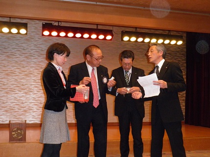![]() 次は、中田南砺RC会長の抽選(マーシ園の木彫刻作品)10名 |