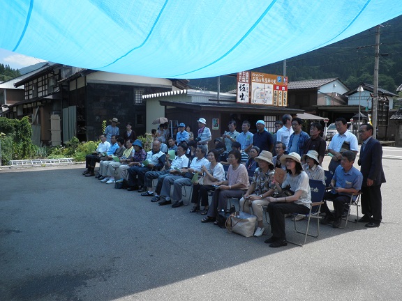 (参加者) 世界遺産、平地区、相倉合掌集落前にて 後列・・・高木(岩倉)、磯辺、松井、村岡、長谷川清、鴨野、和田益 吉田、初田、太田、大久保、藤永、岩倉雅、土田 前列・・・山本武、山田(堀井)、梅井、和田京、寺西、山本博、中田、大井(辻村)、中村(長原)、窪島、南部、長谷川光