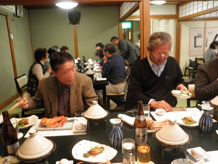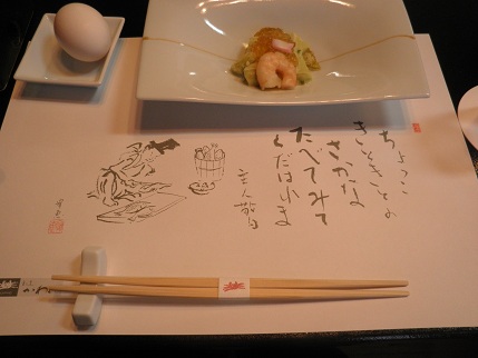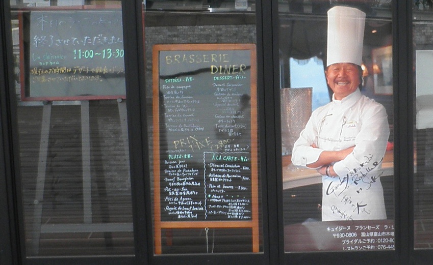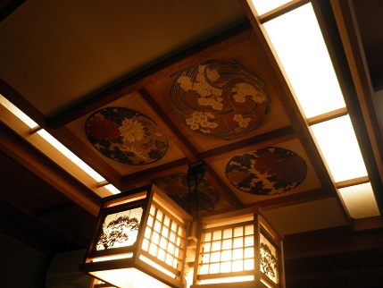 5.割烹「かわぐち」:射水市中央町(万葉線新町口駅前)…カニ・白海老料理が売り物、2階の宴会の部屋には、新湊出身の僧、牧宥恵師の額や襖絵、天井画があります。