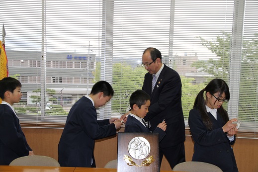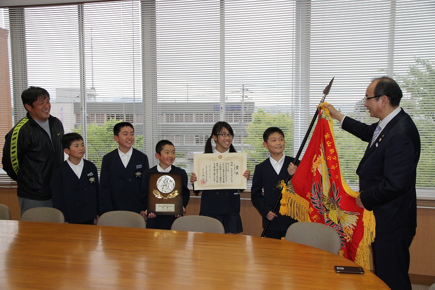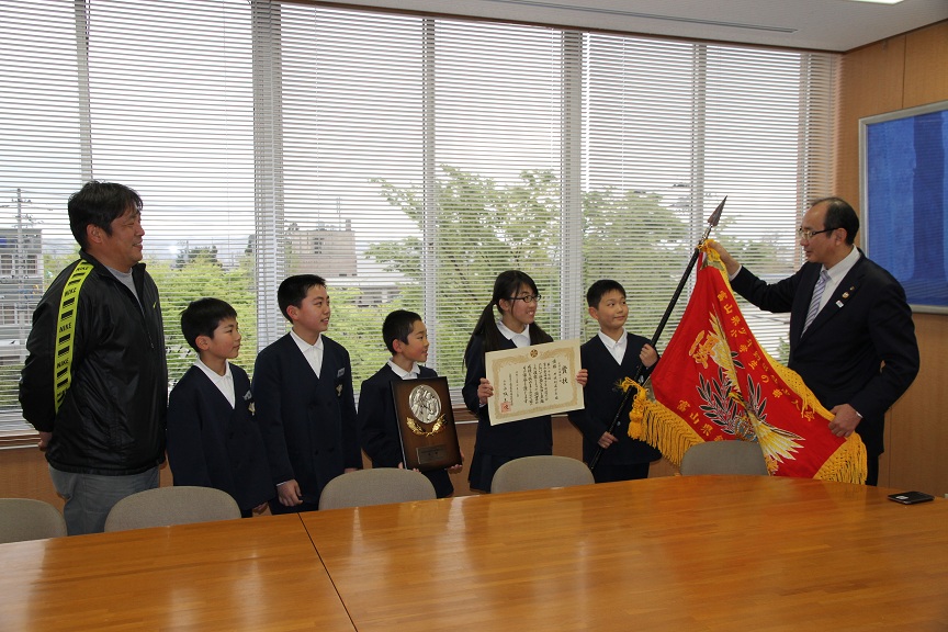 *南砺市の田中市長に、優勝報告をしました(平成25年5月1日)