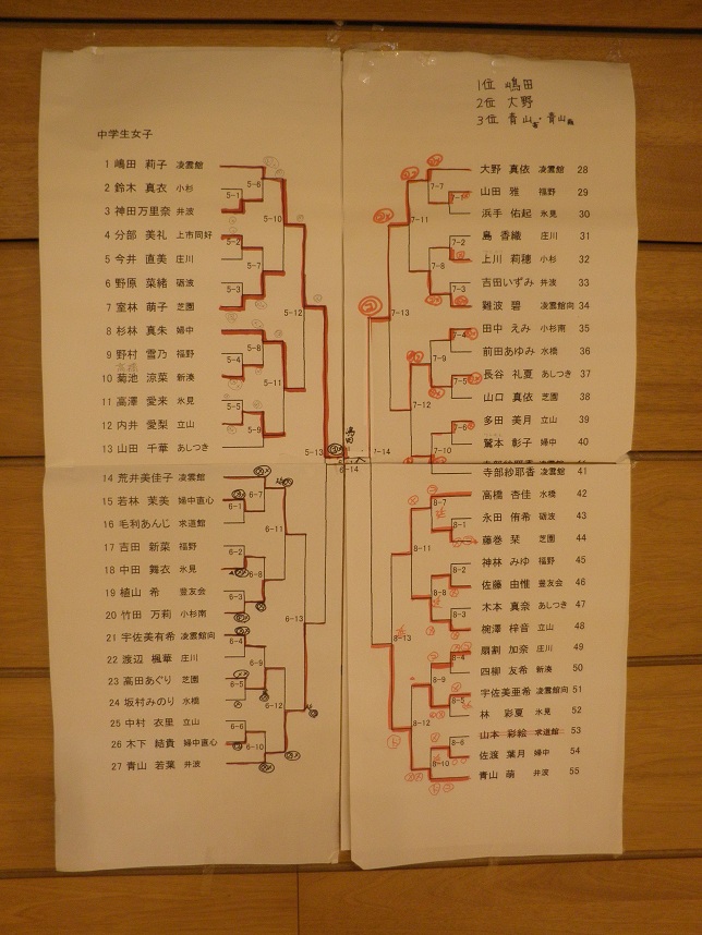| 1回戦 | 神田 | 篠原 | 松川 | 幸山 | 石川 | 2回戦 | 神田 | 篠原 | 松川 | 幸山 | 石川 | 準々決勝 | 宮本 | 福原 | 久保 | 岩田 | 浜谷 | ||||||