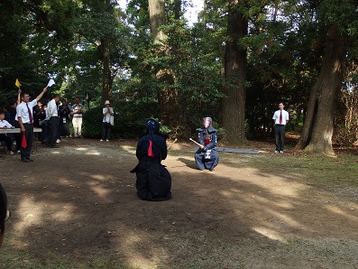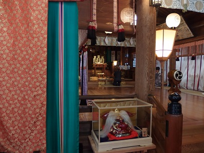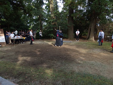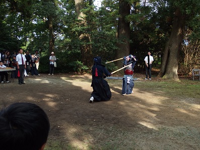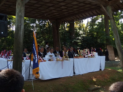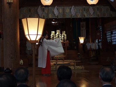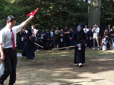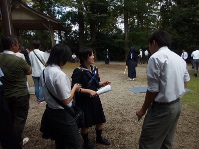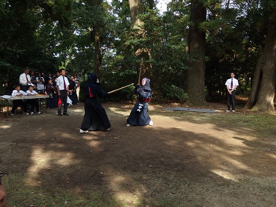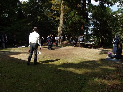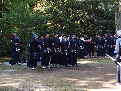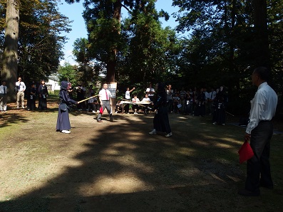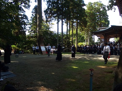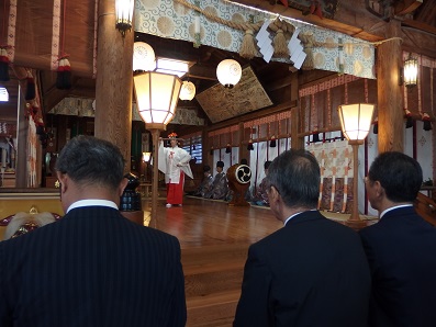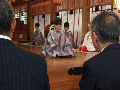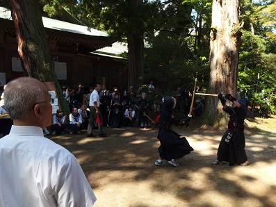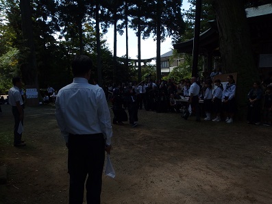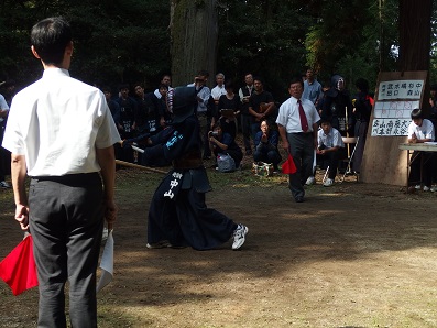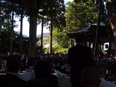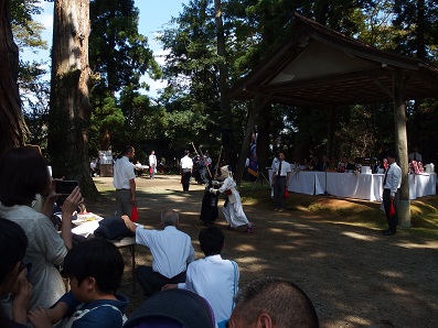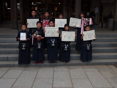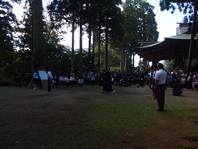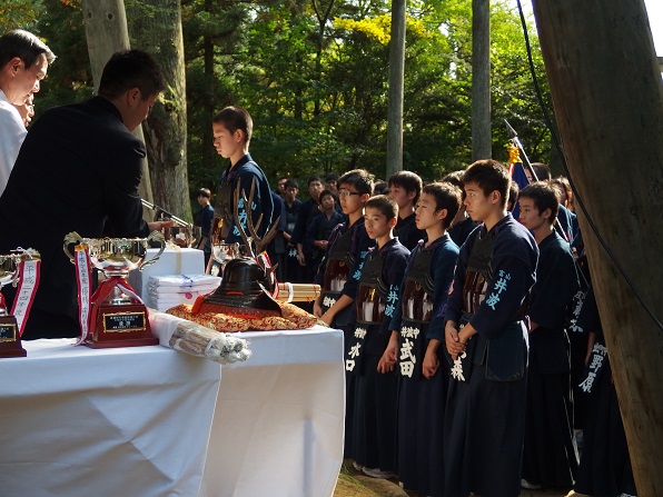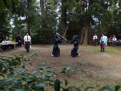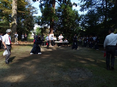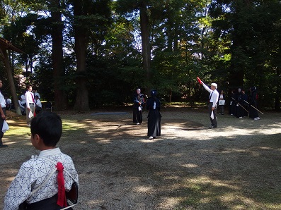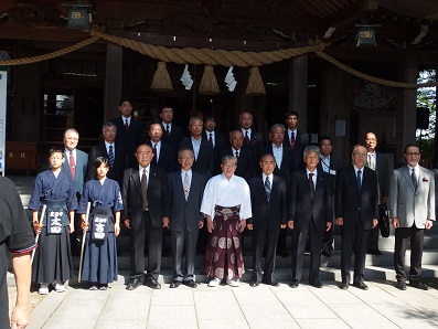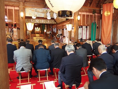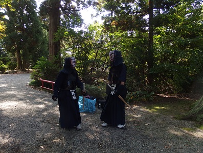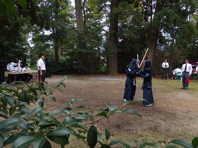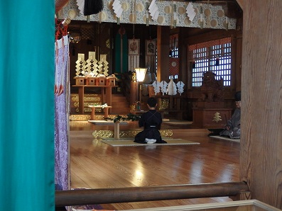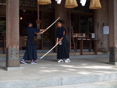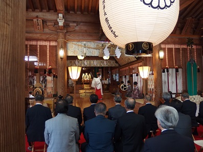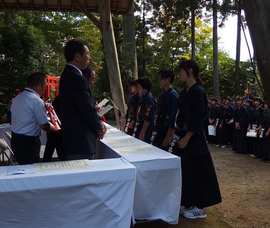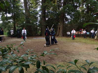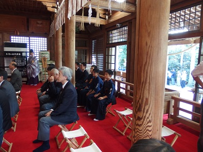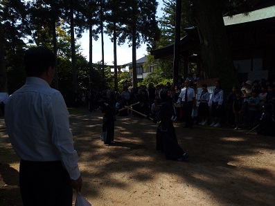 ![]() 高瀬神社神前にて、剣道大会の報告祭 |