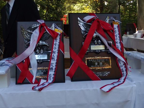 ![]() 中学女子個人 優勝盾・次勝盾 |
