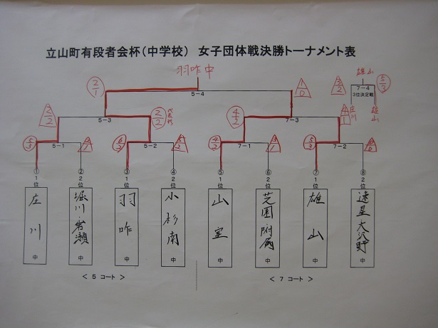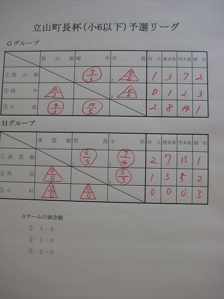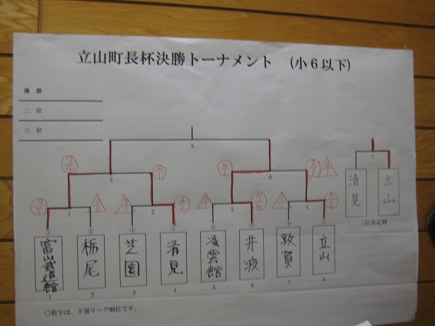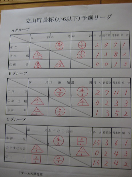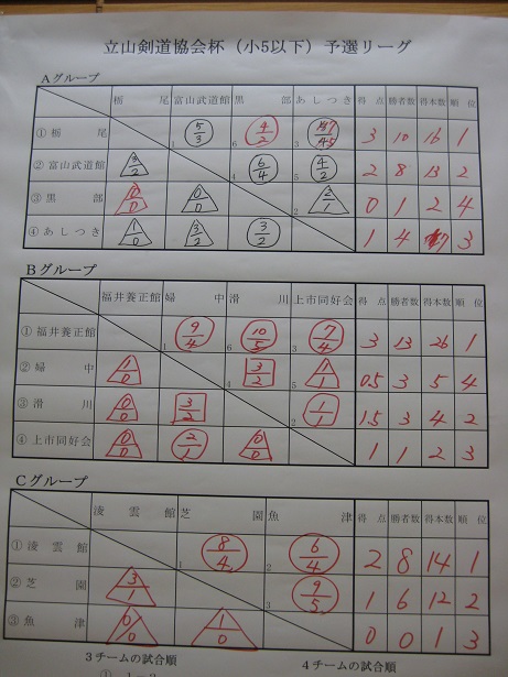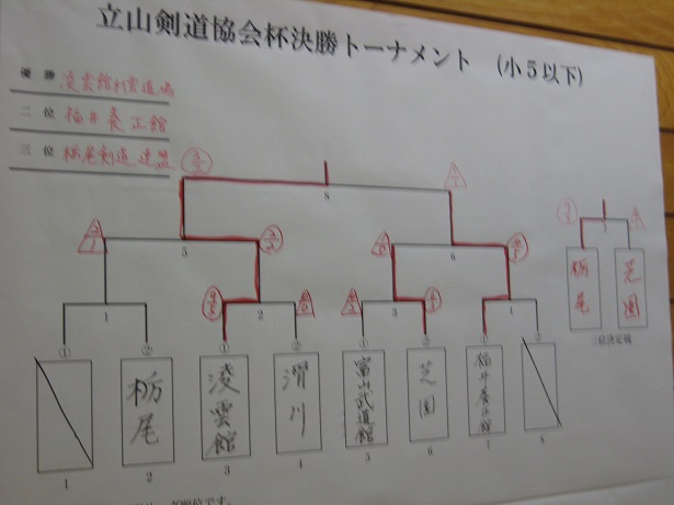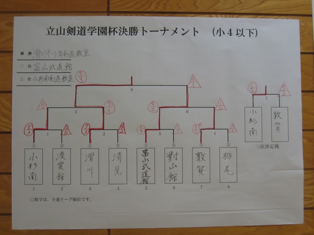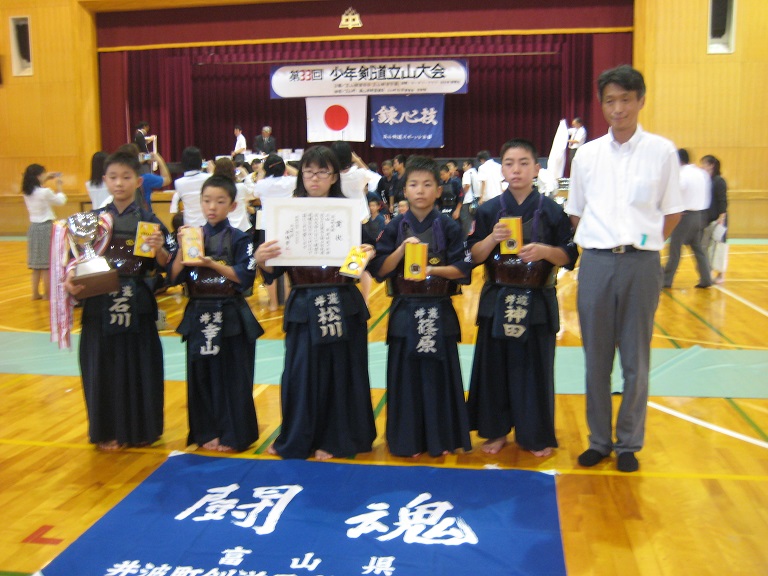 | *井波スポ少の成績・・・詳細 9月23日、第33回少年剣道立山大会(雄山中学校体育館) 小学生(立山町長杯:6年以下の部) 井波(神田・篠原・松川・幸山・石川) 次勝 (立山剣道学園杯:4年以下の部) 井波(松川穂・中井・寺脇・箭原・石川絢) 予選リーグ敗退 中学生(立山有段者杯) 男子 井波(武田・水口・嶋・杉森・中山) 決勝トーナメント1回戦敗退 女子 井波(青山若・−・吉田・青山萌・神田万) 予選リーグ敗退 ![]() ![]() ![]() ![]() |