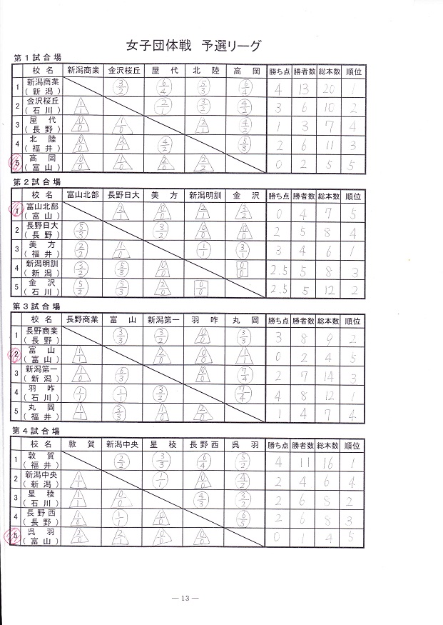 女子団体 富山北部(青山萌補欠) 予選リーグ 4敗(5位で決勝トーナメント進出できず)