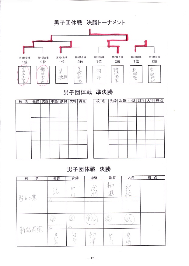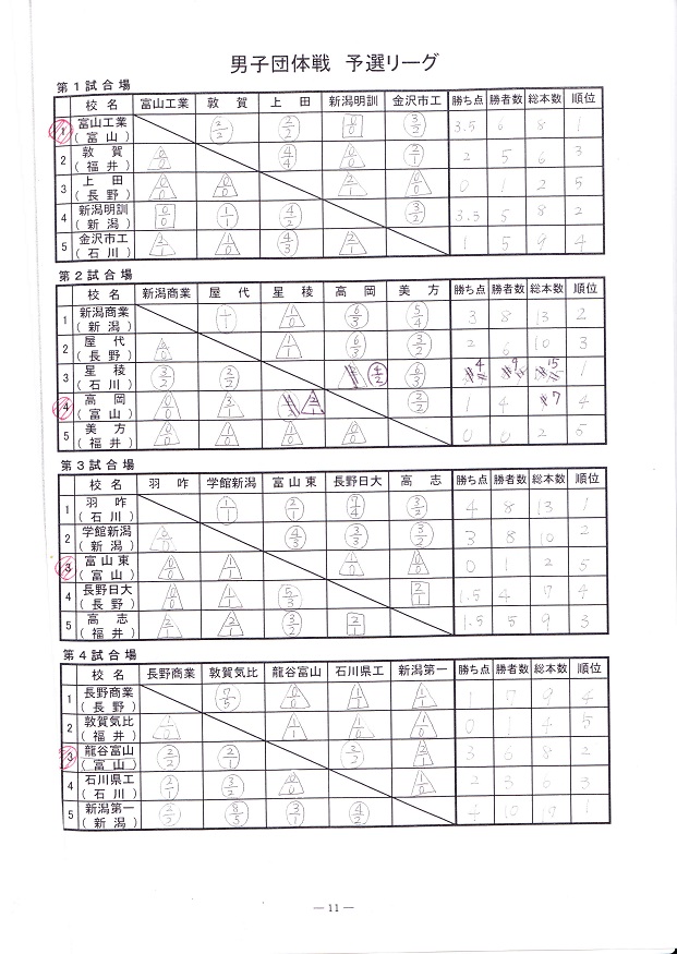 男子団体 高岡(澤宗馬出場) 予選リーグ 1勝3敗(4位で決勝トーナメント進出できず)