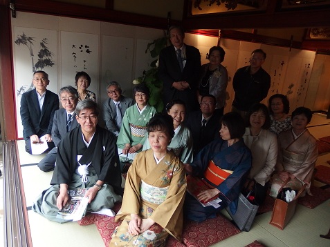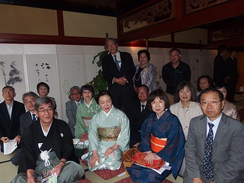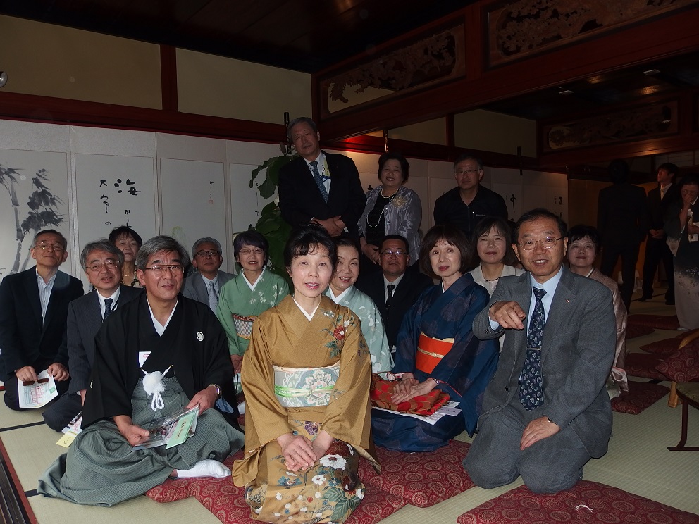 曳山順行を終えて記念撮影・・・外で鑑賞の同級生の長谷川君、荒井君も入って