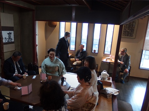 ![]() 2次会は、城端の菓子舗「田村萬盛堂」2階の喫茶室 |