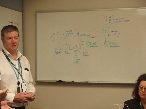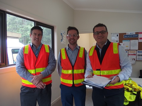 Silvan water plant(浄水場)のスタッフ、Mr. Igor Posenjak , Mr. Justin Archihald, Mr. Allan Morris 事務所で、簡単な説明を受け、この浄水施設の管理室で、全員訪問者名簿に署名の後、見学に向いました。 |