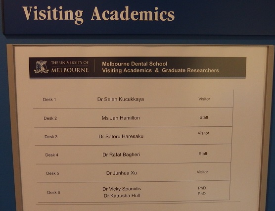 | *参加者名簿 (団長)山内皓央(NPO法人日F会議副会長) 安彦良一(NPO法人日F会議副会長)・夫人 山本武夫(NPO法人日F会議常務理事) 難波亮二(NPO法人日F会議理事)・夫人 野村慶子(登別市・北海道子供の歯を守る会) 茂木香(岡山市・PMJ歯科、歯科衛生士)・令息 有水智香(九大病院、歯科衛生士) ホスト:晴佐久悟(メルボルン大学歯学部Visitor・NPO法人日F会議理事) 通訳:董麗娟さん(RMIT大学日本語講師:山内先生友人) |