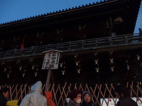 前から一度は観たかった「お水取り」の大松明を、夕闇迫る時刻から、北風吹く寒い中1時間ほど待って拝見いたしました。