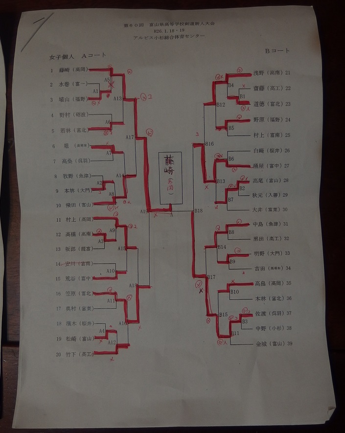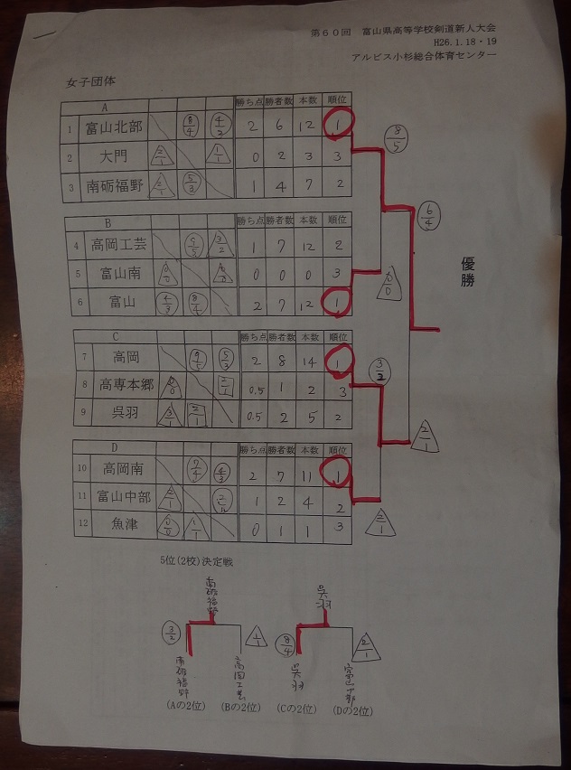 第1日 女子団体 @富山北部A高岡B富山・高岡南D南砺福野・呉羽:北信越:清流杯出場 F高岡工芸・富山中部