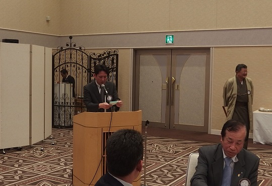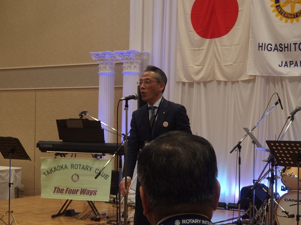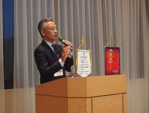 ![]() 岡部一輝ガバナーノミニーの挨拶「いよいよ、来年7月から、岡部年度です」 |