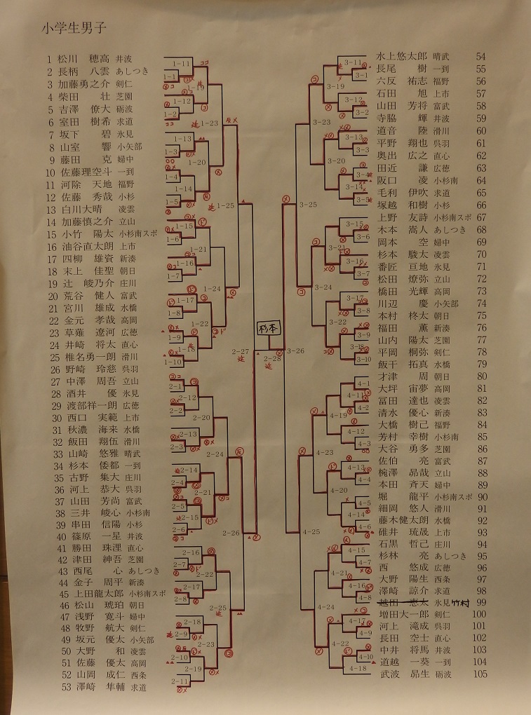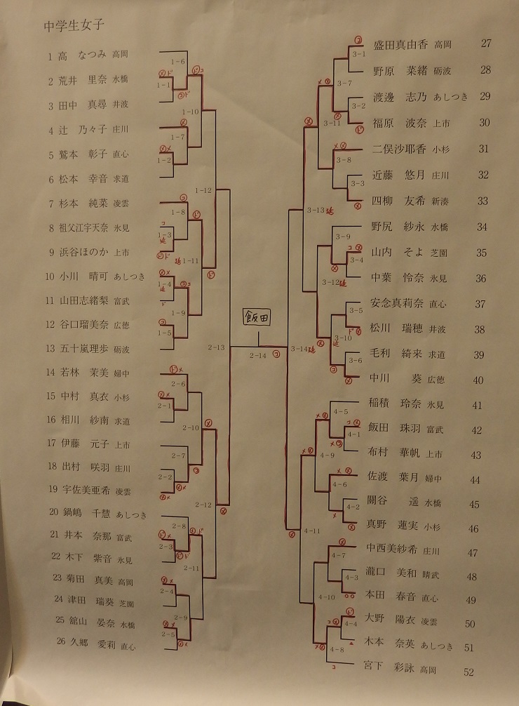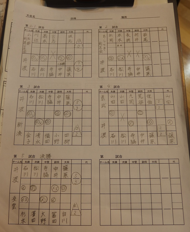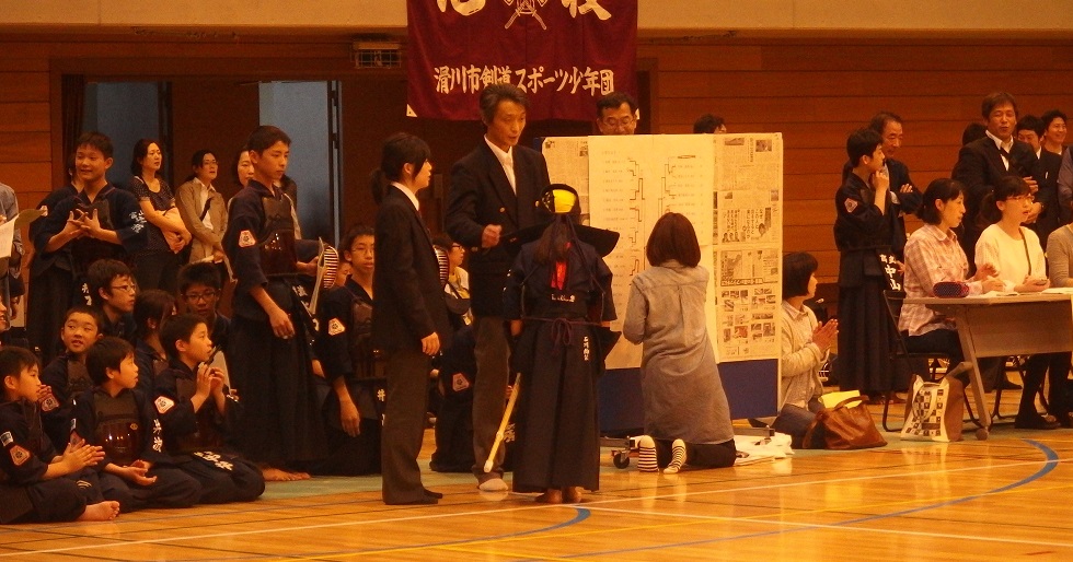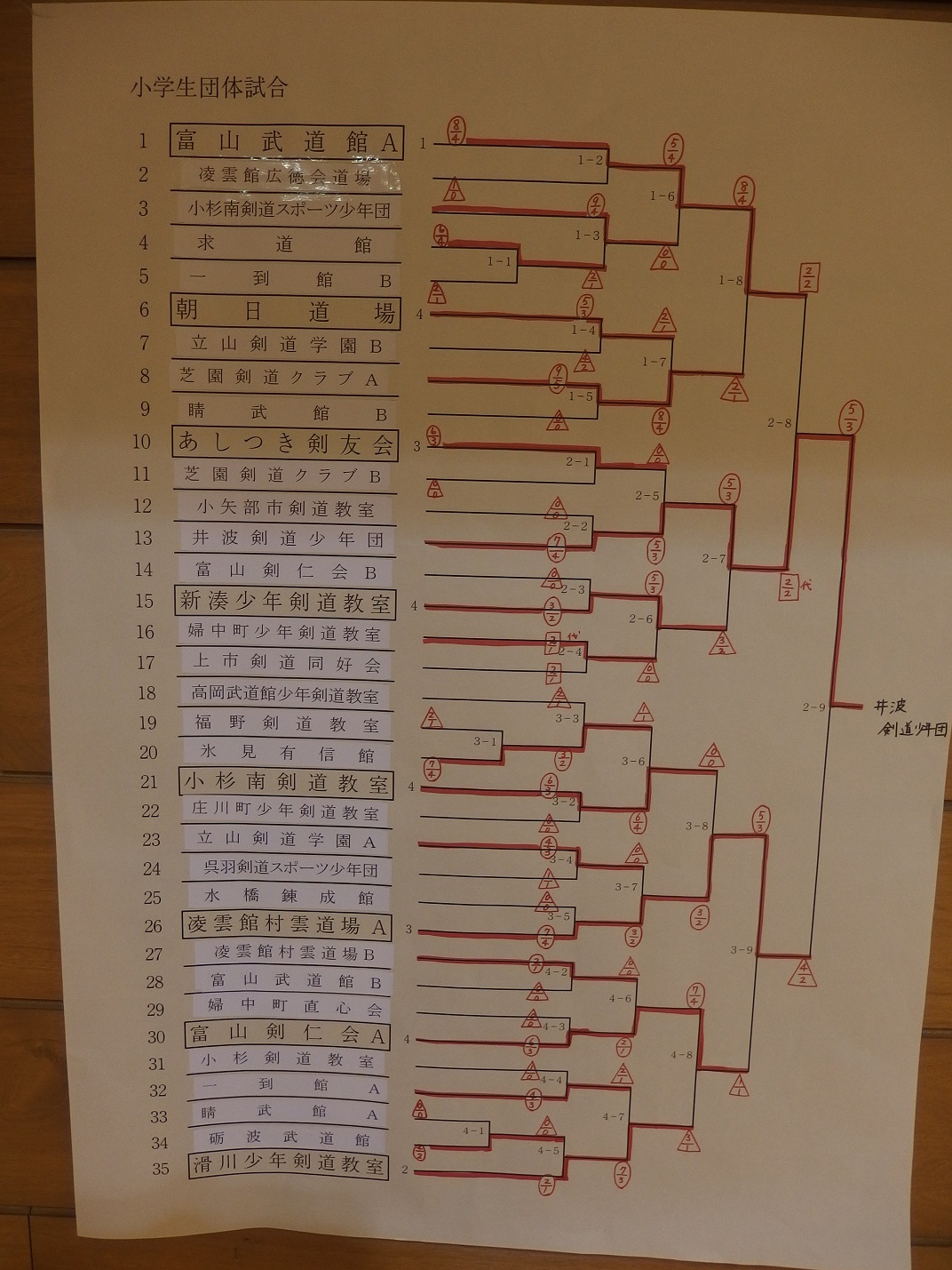| *井波剣道スポ少の成績 (個人)小学生男子 中井将馬 3回戦進出(2勝)、篠原一星 2回戦進出(準優勝の山田〈富武〉に敗れる:1勝)、松川穂高 2回戦敗退、寺脇輝 1回戦敗退 女子 石川絢菜 準優勝(4勝:決勝で高堂〈小杉南〉に敗れる) 中学生男子 杉森佑紀 4回戦進出(3勝:ベスト16。準優勝の大野〈凌雲館〉に破れる)、石川凌太朗 4回戦進出(2勝:ベスト16)、 水口脩弥 3回戦進出(1勝)、武田将征 2回戦敗退 女子 松川瑞穂 2回戦進出(1勝)、田中真尋 1回戦敗退 (団体) 小学生 井波(石川絢・松川穂・寺脇・中井・篠原) 優勝・・・2年ぶり3回目 中学生 井波A(水口・田中・武田・石川凌・杉森) ベスト8進出するも、準々決勝で敗退、代表決定戦1回戦で勝ち、日本武道館出場決定 井波B(神田・酒井・幸山・津崎・松川瑞) 3回戦進出(2勝)するも、あと一歩及ばず |